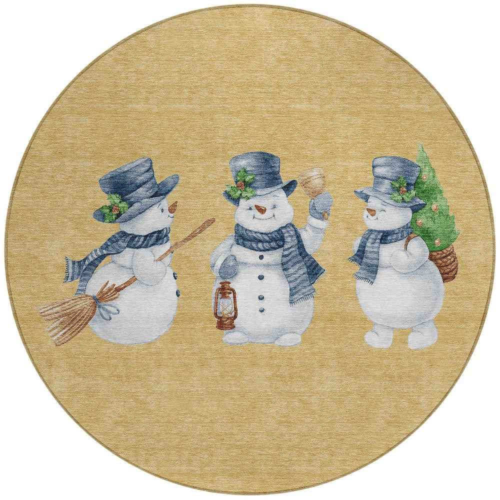 8' Gold Denim Blue And Ivory Round Botanical Leaves Washable Indoor Outdoor Area Rug
