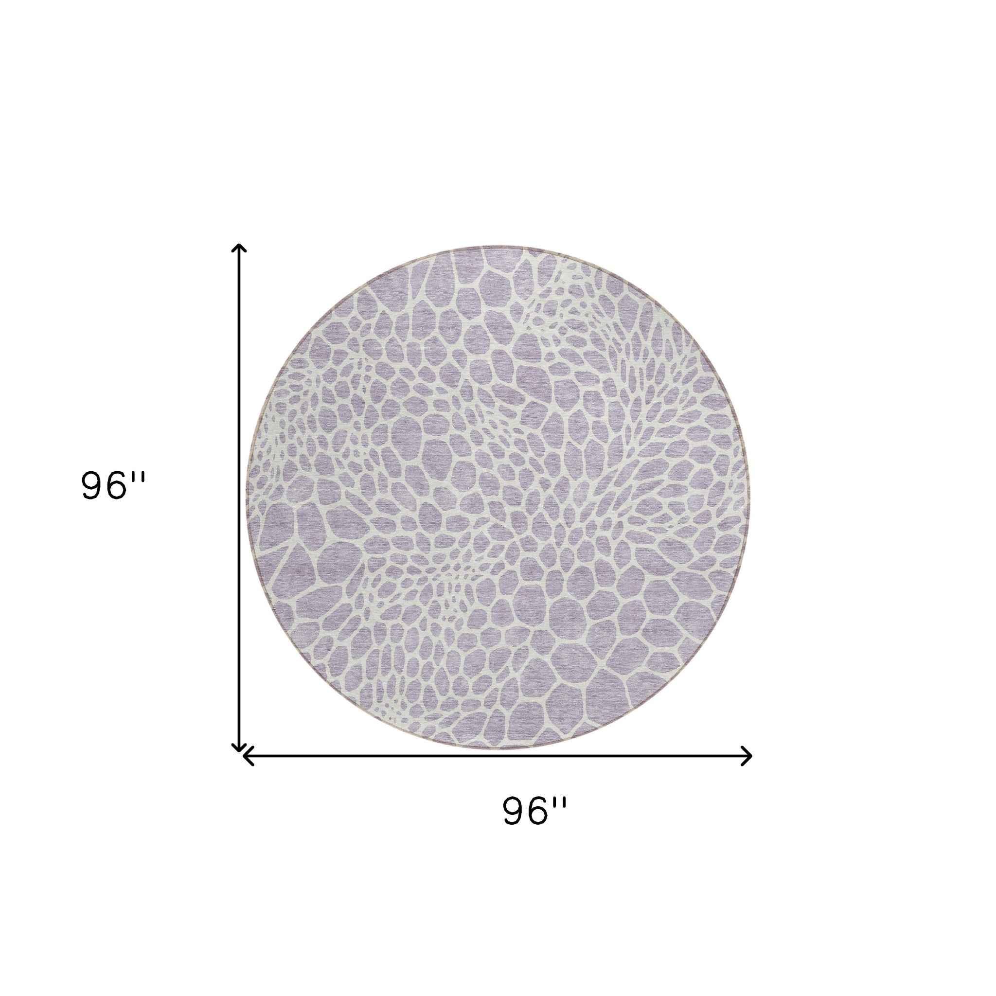 8' Lilac And Ivory Round Geometric Washable Indoor Outdoor Area Rug