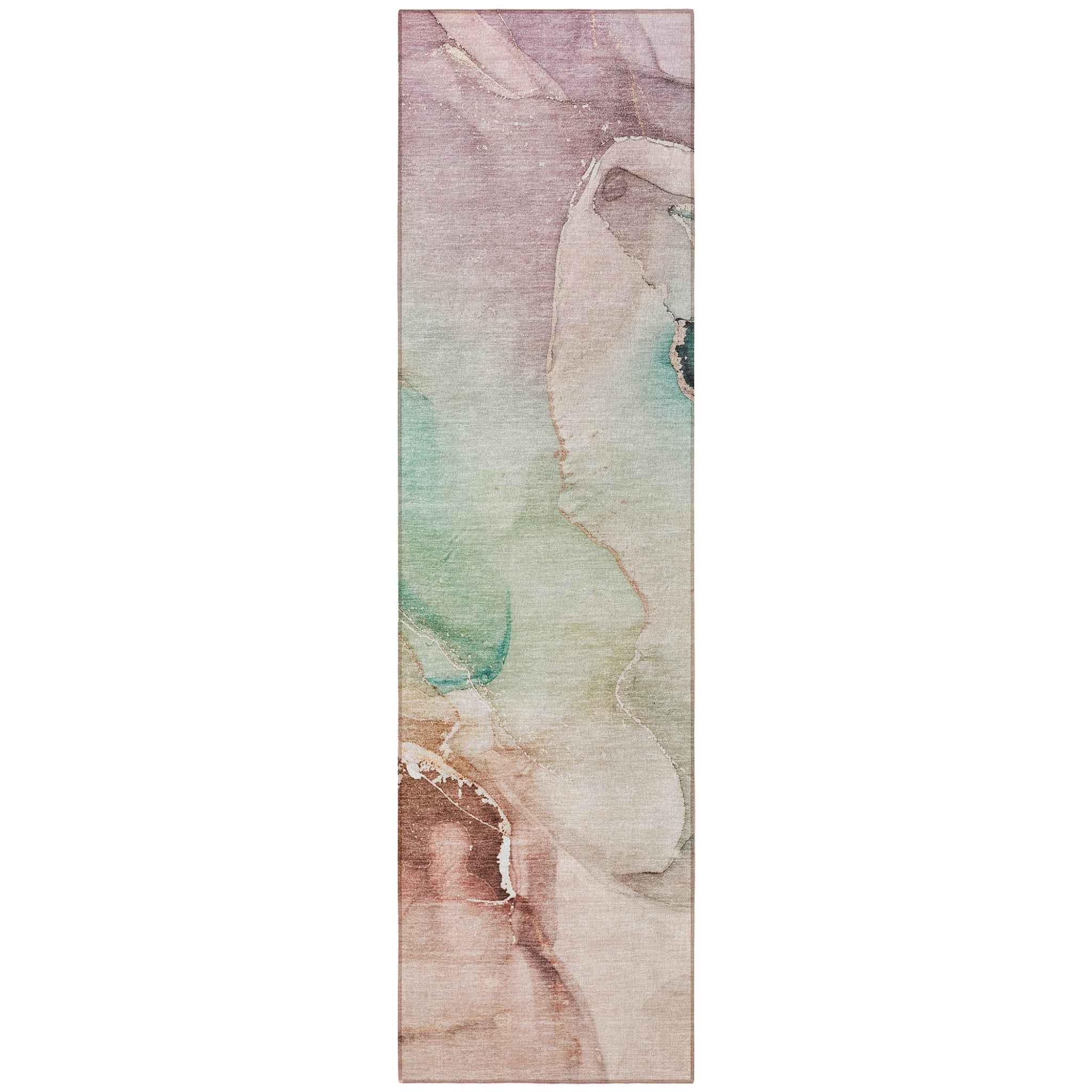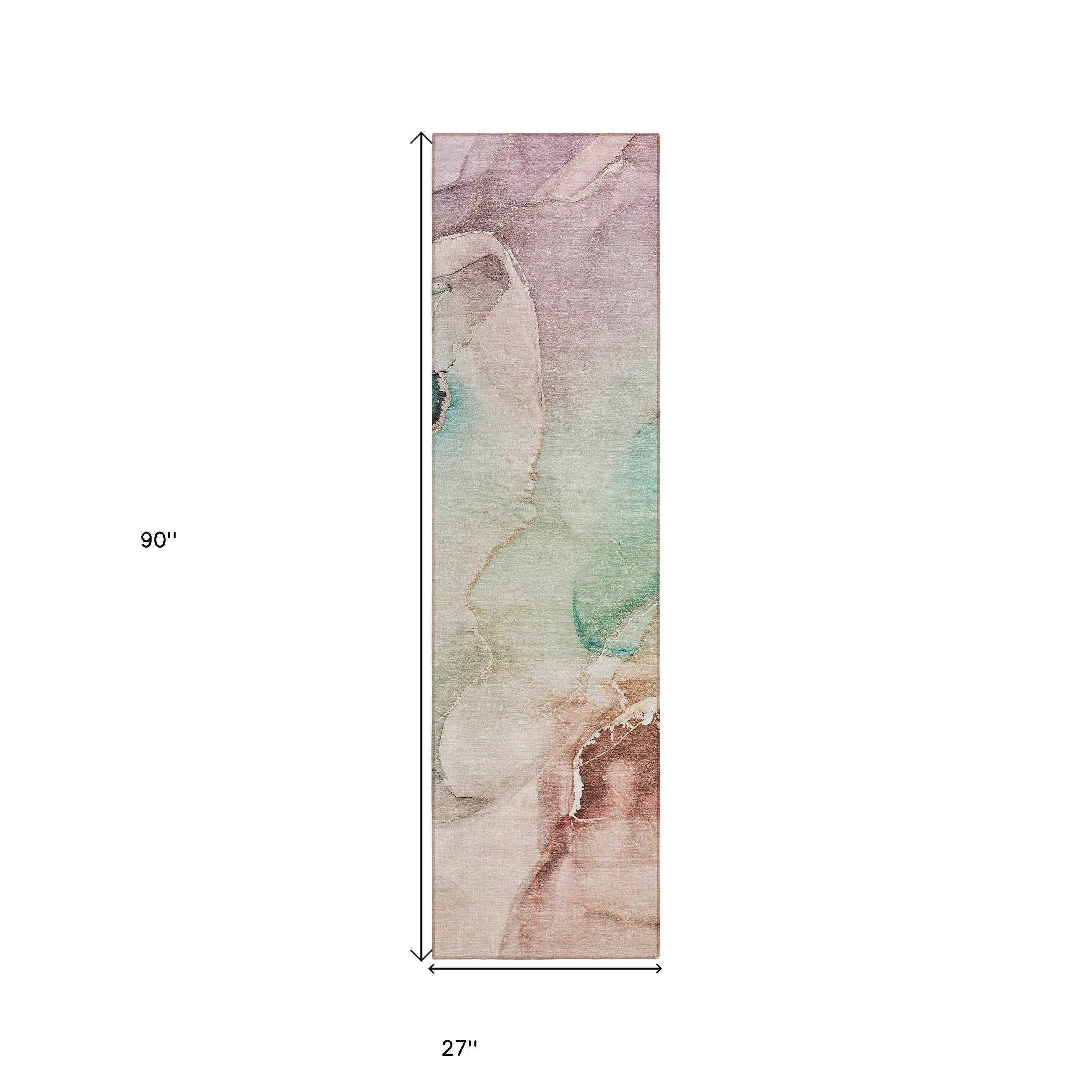 8' Runner Teal Abstract Washable Non Skid Indoor Outdoor Runner Rug