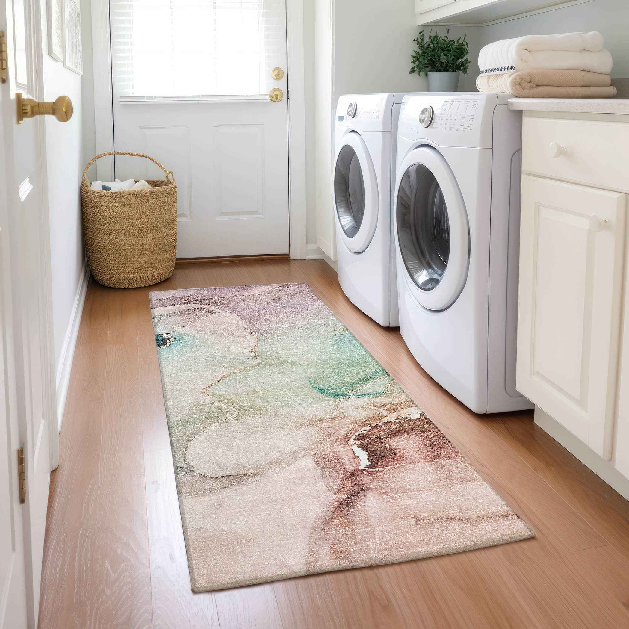 Set an inviting tone in your space with this 8-foot runner teal abstract washable stain resistant non skid indoor outdoor runner rug. This runner shaped rug features a abstract design in teal to give it visual interest. A classic shape marries with good looking design for your space ideal for spaces with kids and pets, this rug is stain resistant to help repel stains and spilled liquids. Place this area rug against a hardwood or tile floor and it will enliven your living space with style and sophistication. 27-inch H x 90-inch W x 0.19-inch D