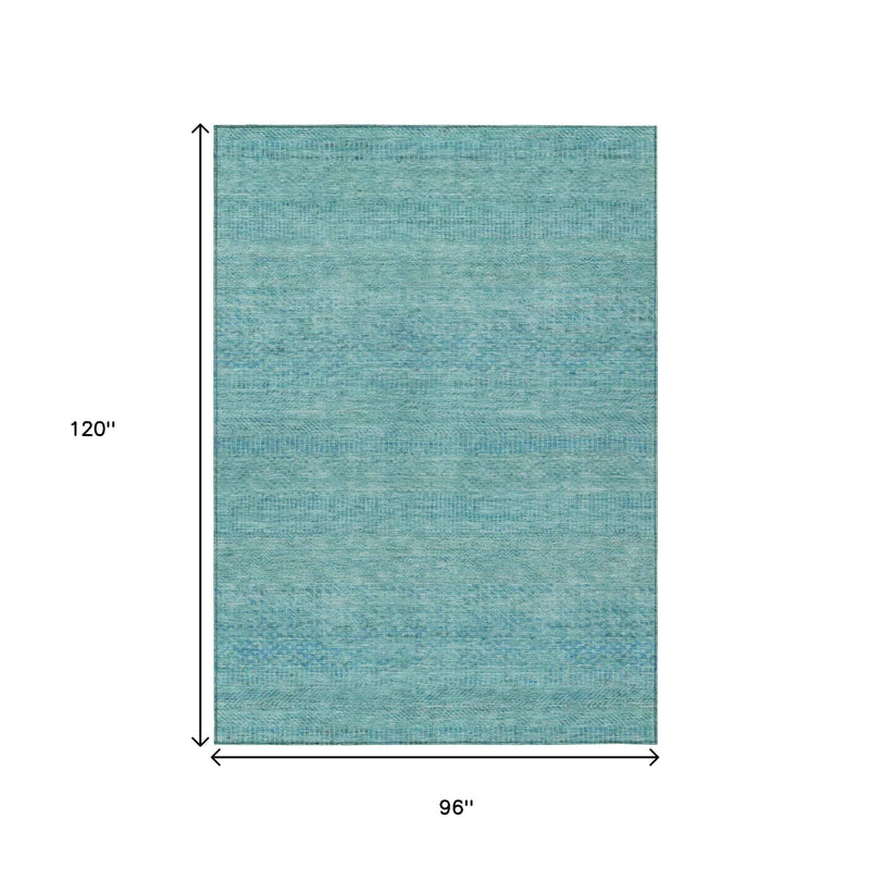 8' X 10' Aqua And Teal Blue Striped Washable Indoor Outdoor Area Rug