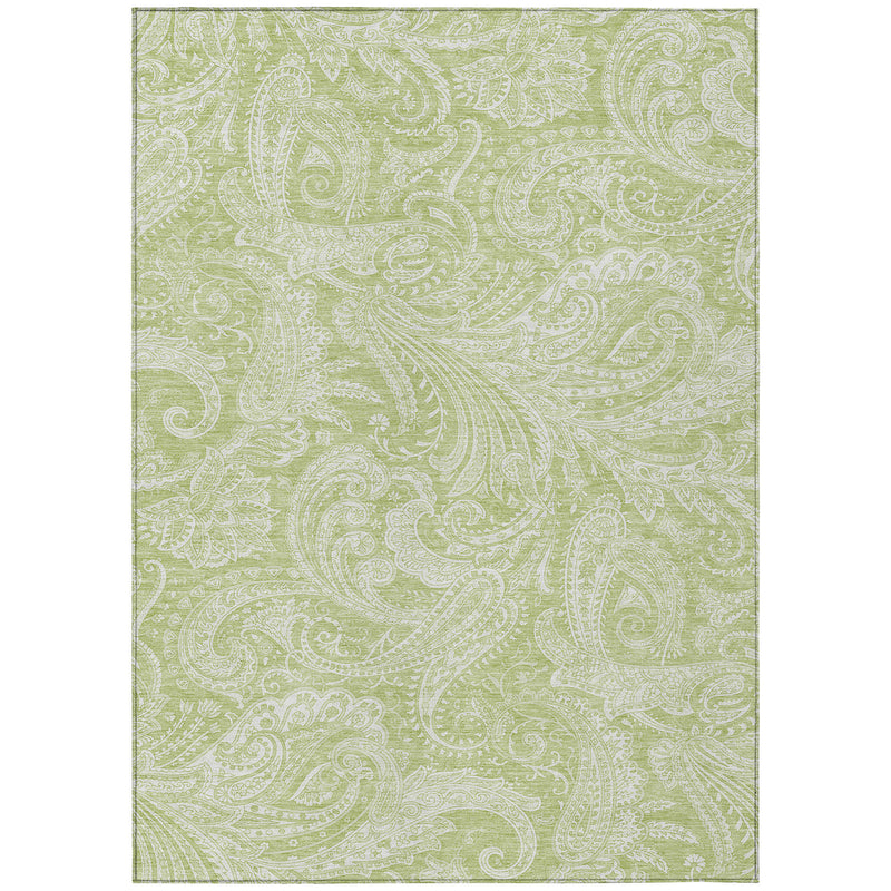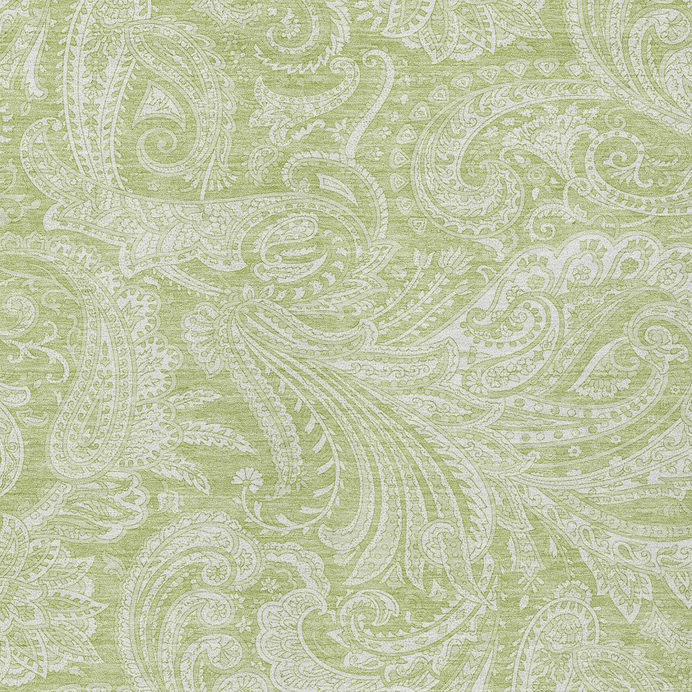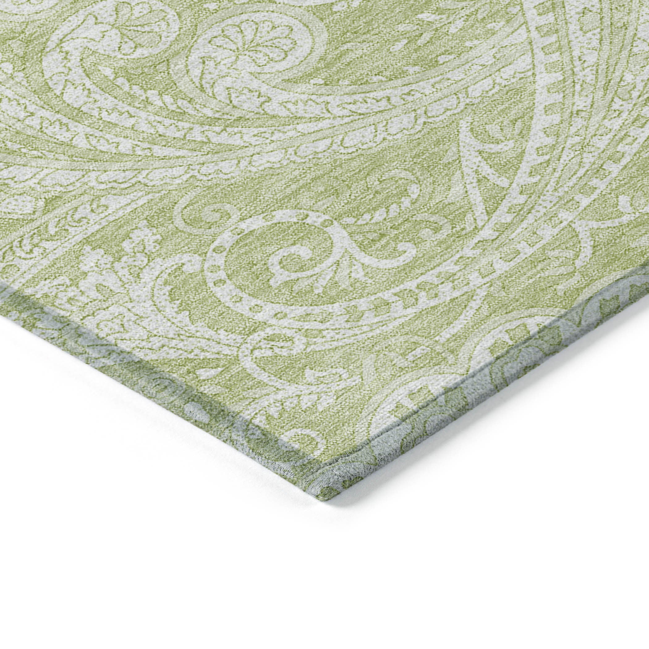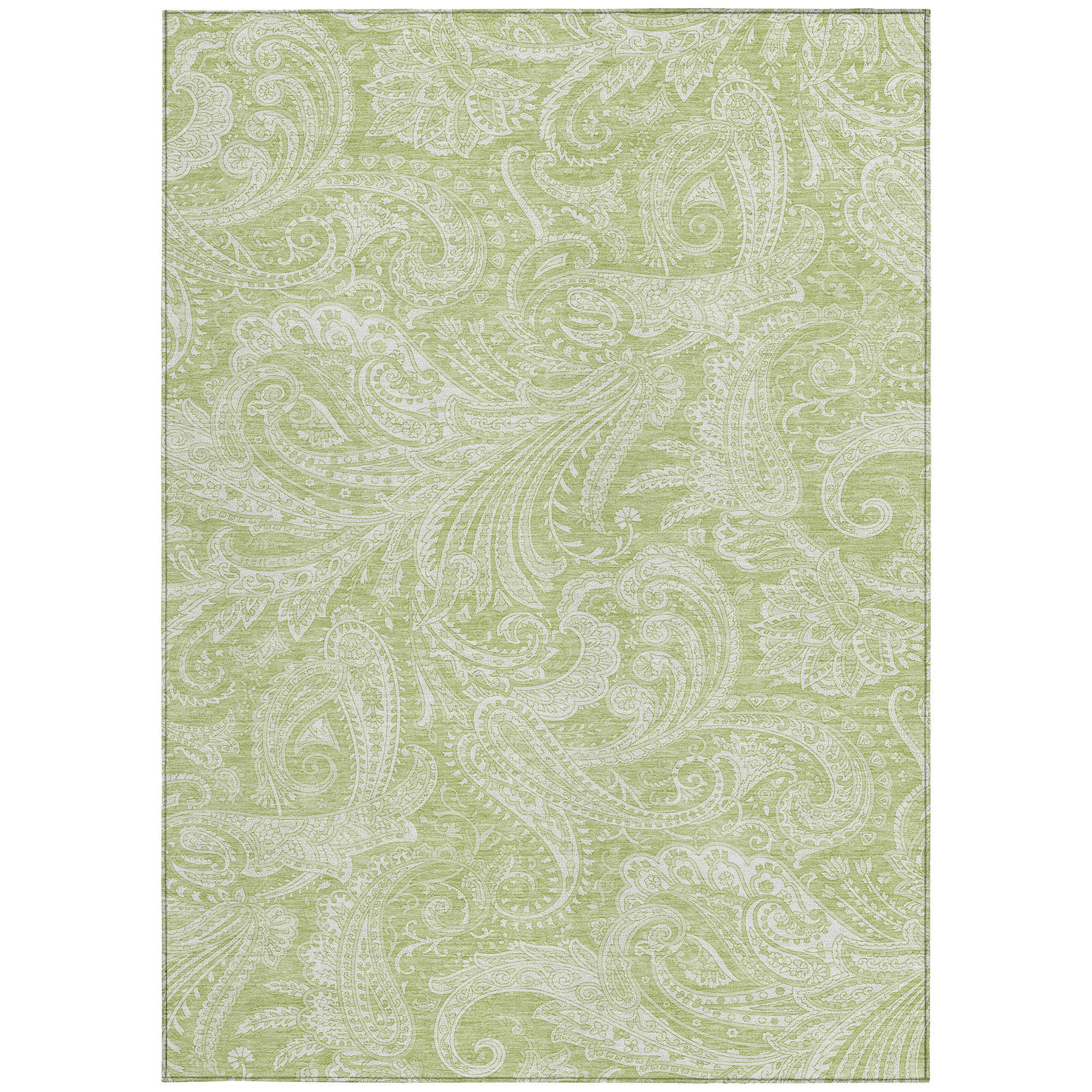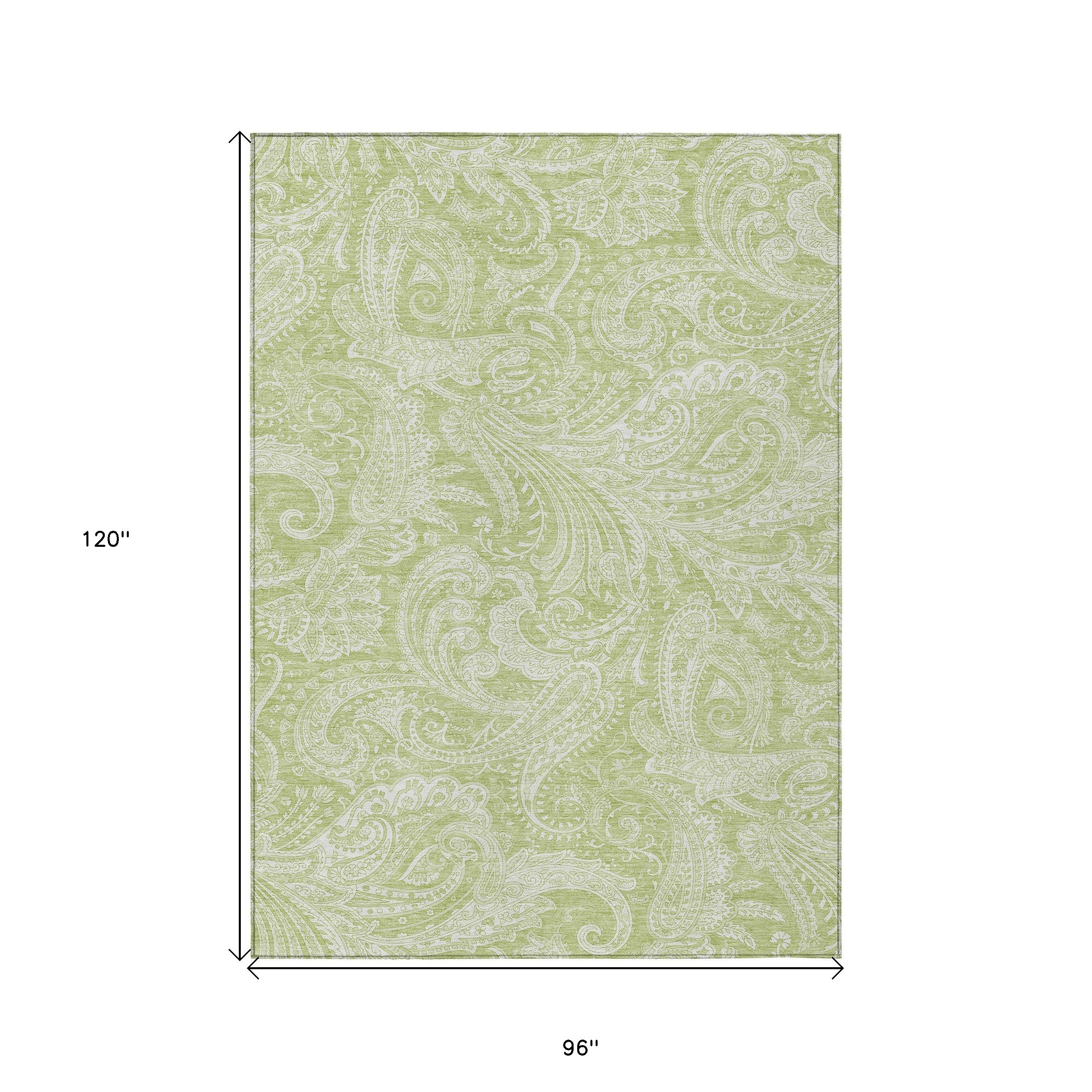 8' X 10' Green And Ivory Paisley Washable Indoor Outdoor Area Rug