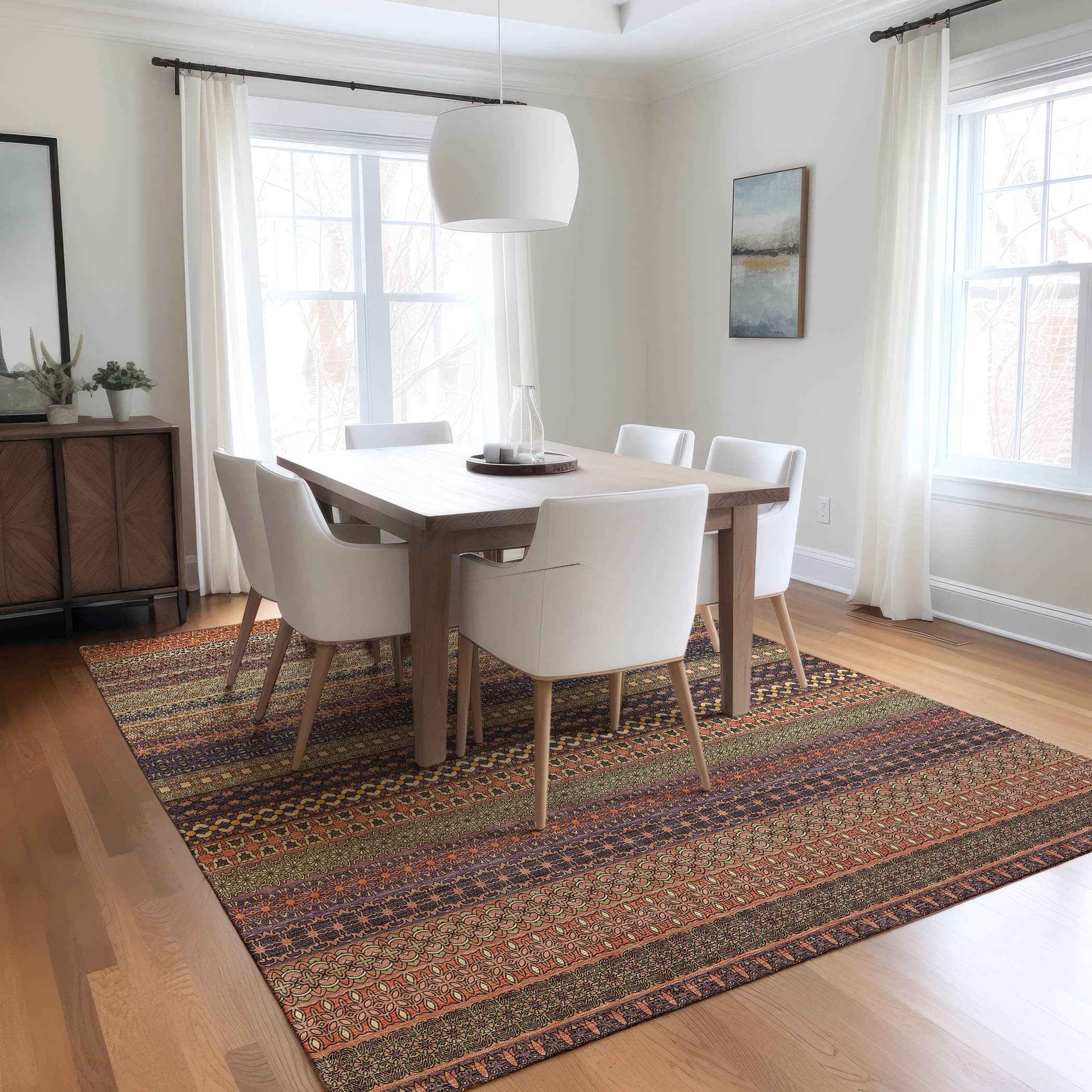 Set an inviting tone in your space with this 8-foot x 10-foot orange striped washable stain resistant non skid indoor outdoor area rug. This rectangle shaped rug features a striped design in orange to give it visual interest. A classic shape marries with good looking design for your space ideal for spaces with kids and pets, this rug is stain resistant to help repel stains and spilled liquids. Area rugs help to give warmth and sense of home to your space. 96-inch H x 120-inch W x 0.19-inch D