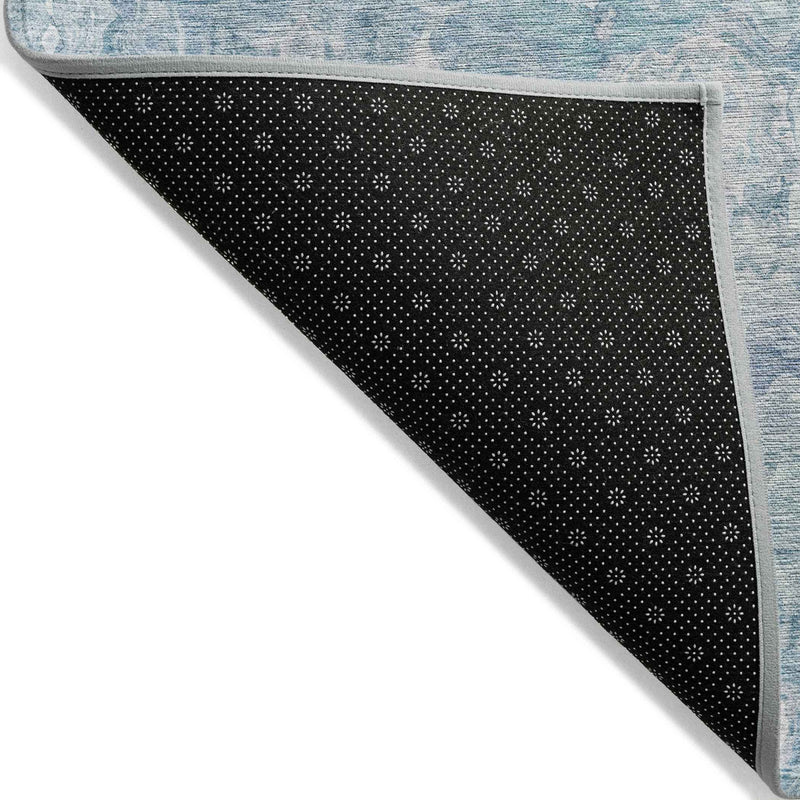 8' X 10' Sky Blue And Denim Blue Abstract Washable Indoor Outdoor Area Rug