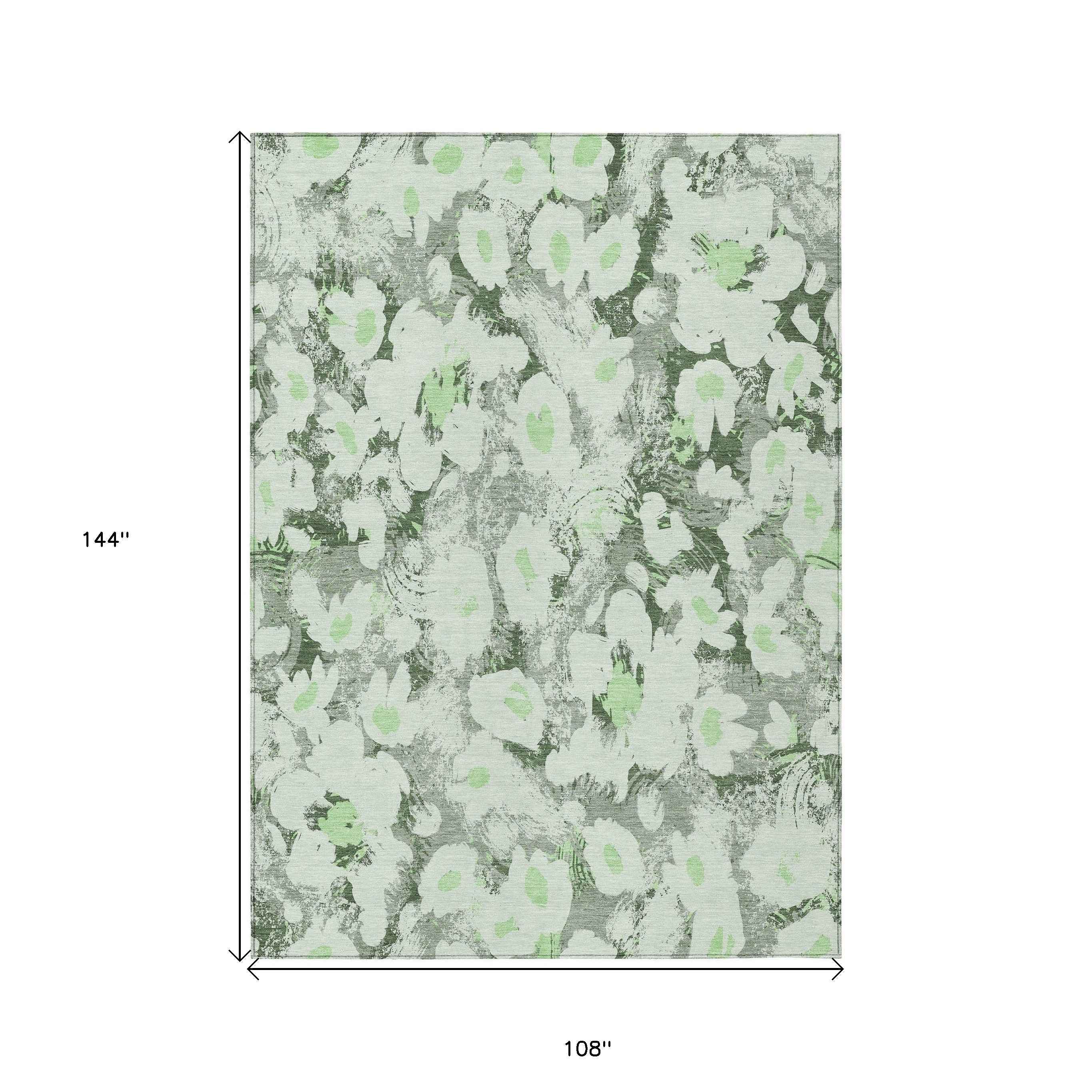 9' X 12' Artichoke Green Floral Washable Non Skid Indoor Outdoor Area Rug