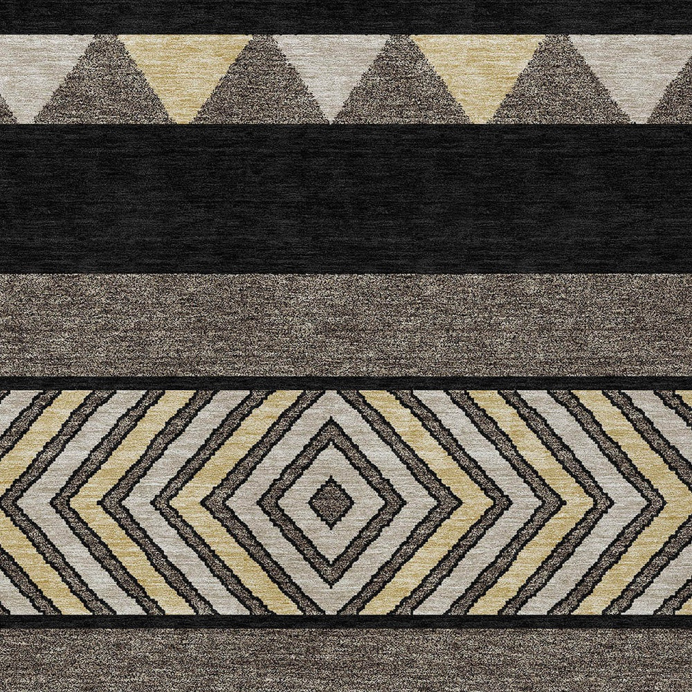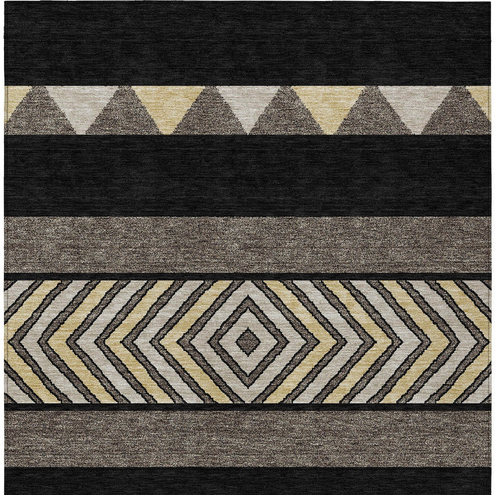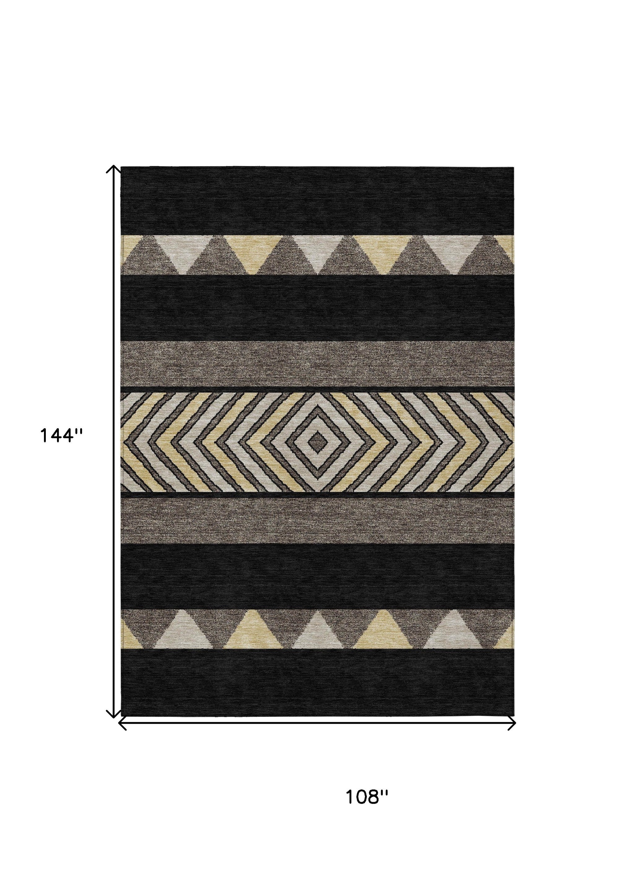 9' X 12' Black Ivory And Wheat Southwestern Washable Indoor Outdoor Area Rug
