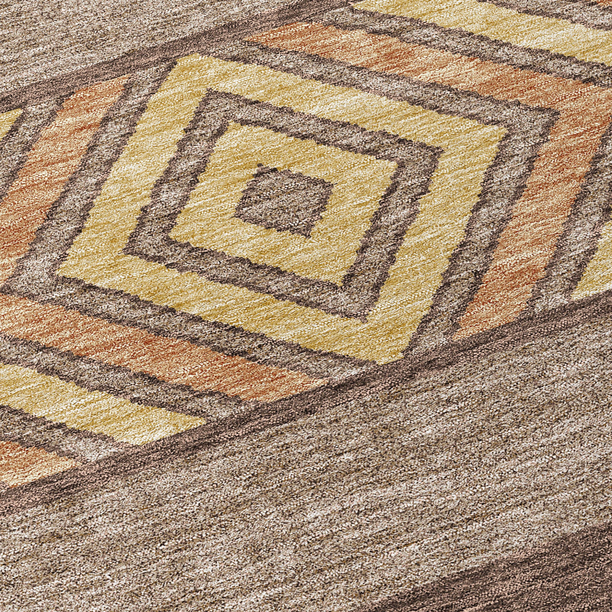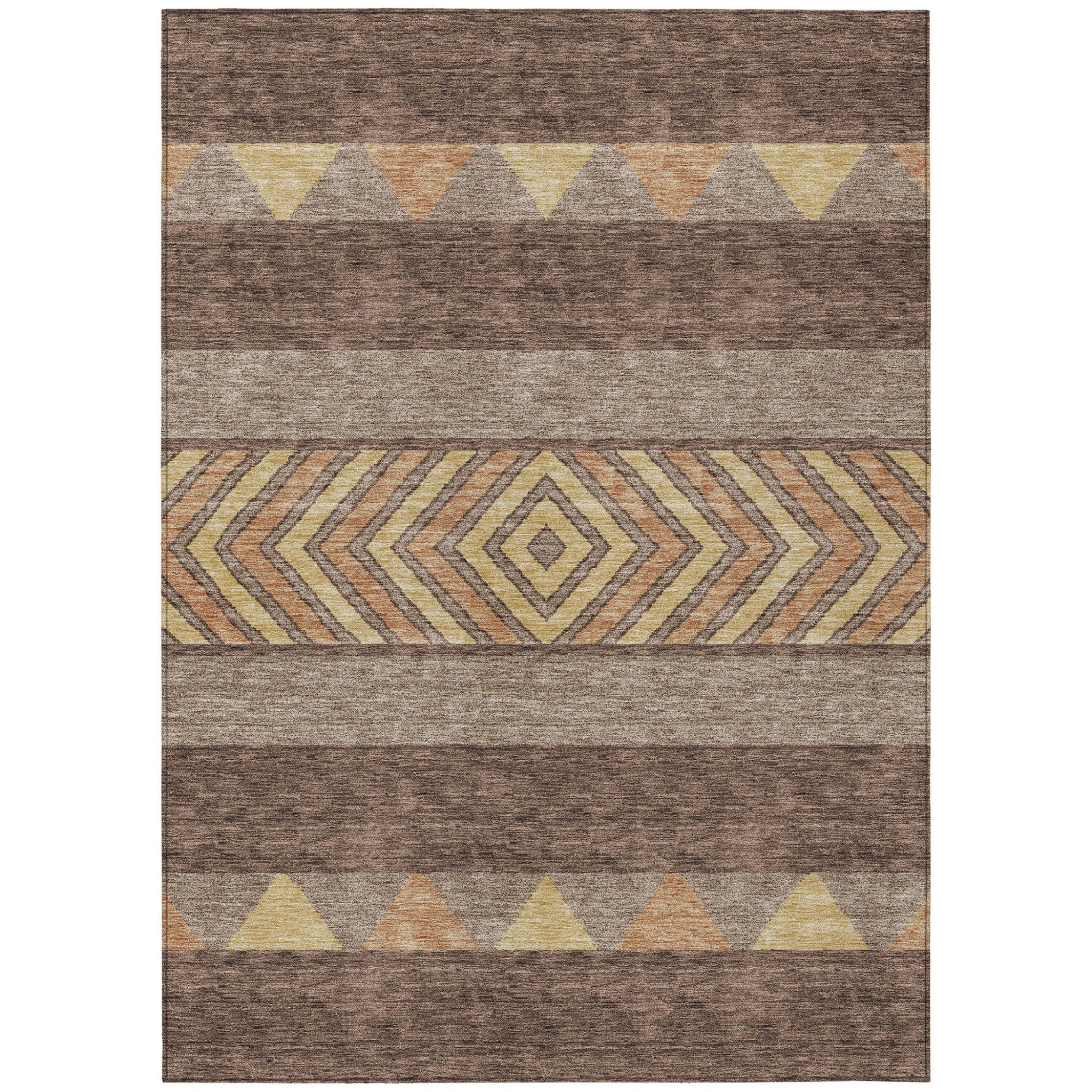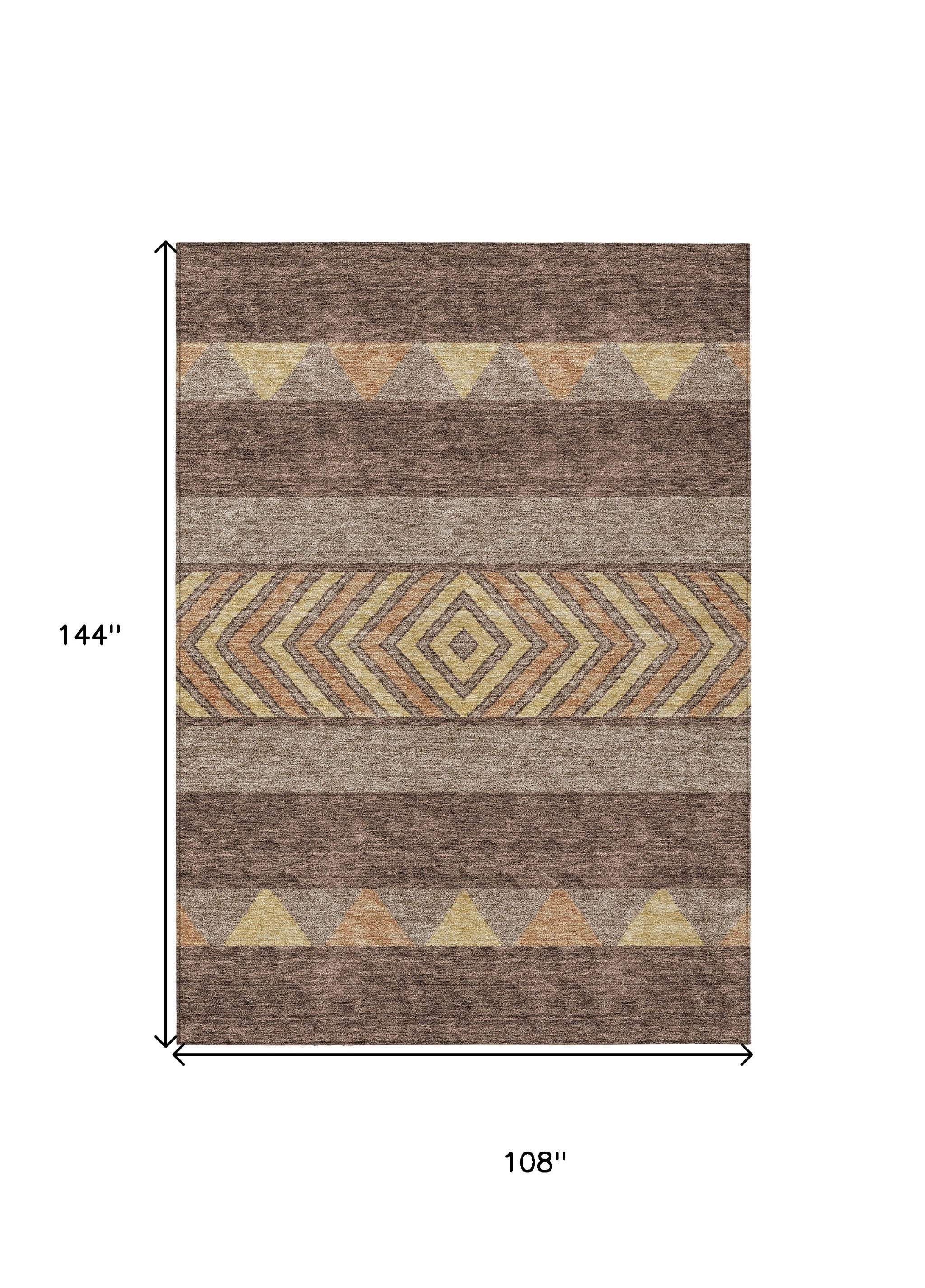 9' X 12' Brown Wheat And Copper Southwestern Washable Indoor Outdoor Area Rug