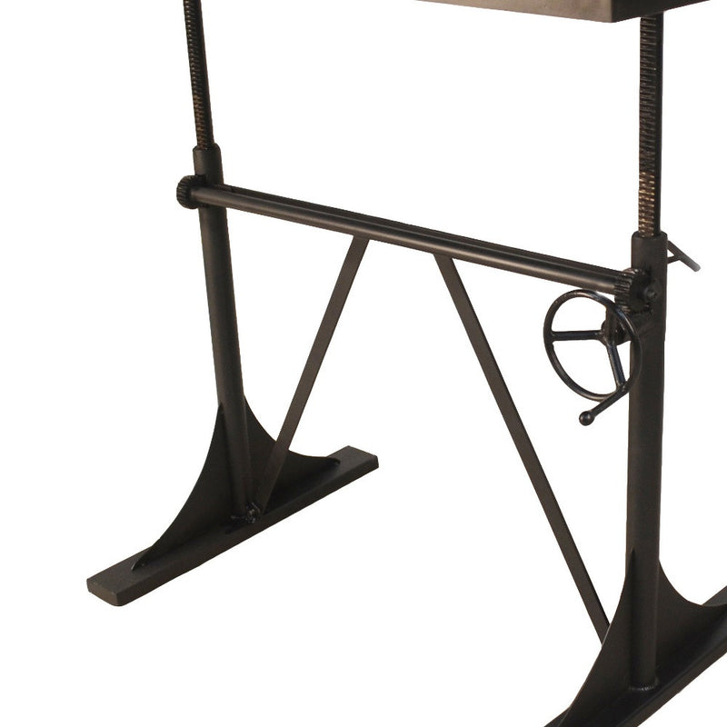 Adjustable Height Brown and Black Solid Wood and Iron Writing Desk