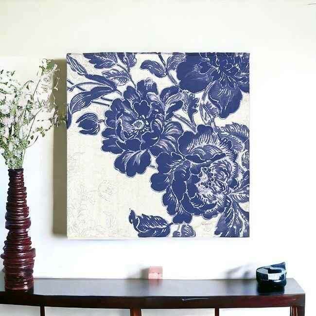 The blue toile rose unframed print wall art is the perfect decorative accessory for your home. This print is a visual artistic expression that allows you to decorate your space in style. Reproduced for you on canvas, this hanging decorative accent will be a trendy and fashionable way to dress your walls. Adding this hanging wall art to your space to make your room feel more finished and attractive. Instantly liven up your space with this art that brings color and dimension to your walls. 30 inches H x 30 inches W x 1.25 inches D