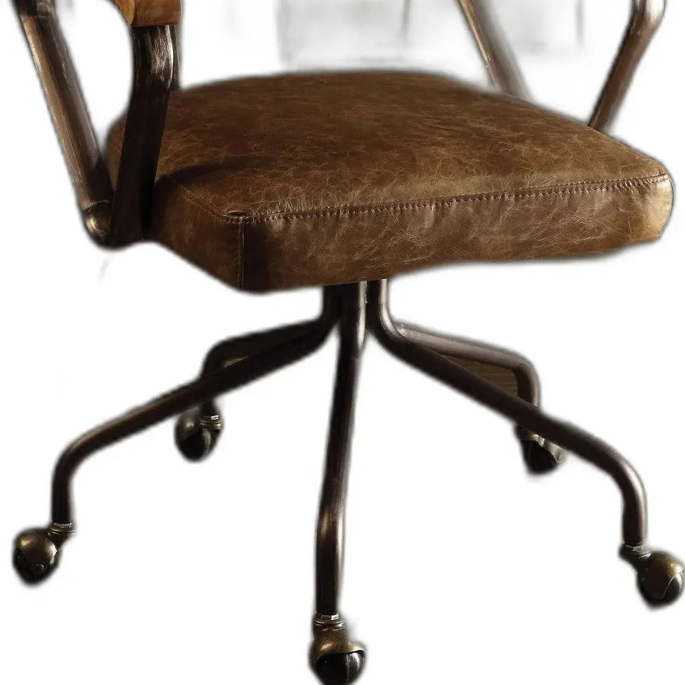 Brown and Black Swivel Faux Leather Rolling Office Chair