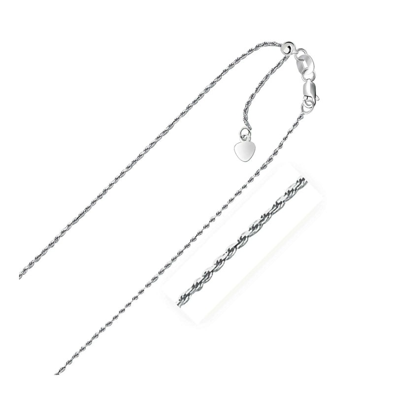 10k White Gold Adjustable Rope Chain 1.0mm