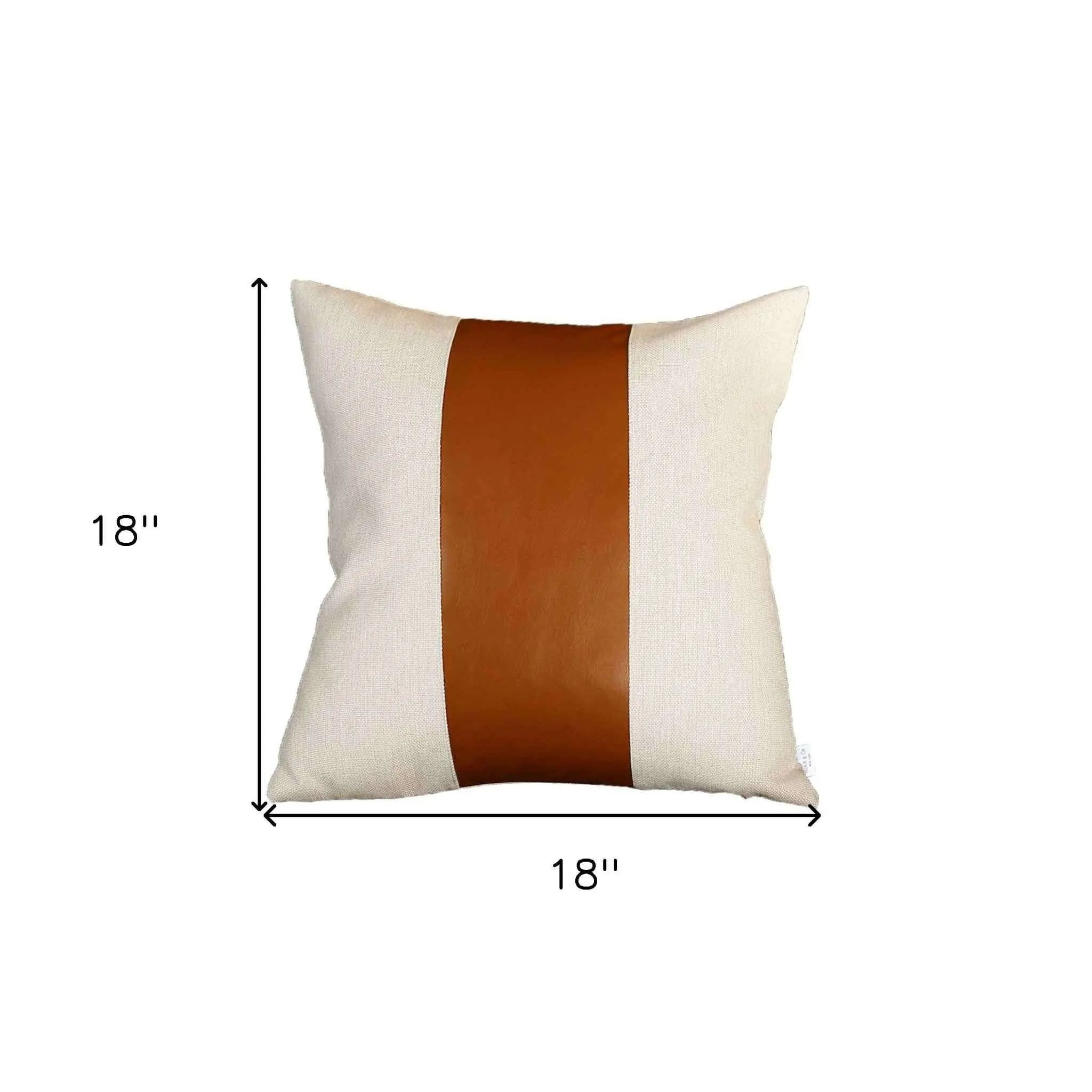 Set Of Two 18" X 18" Brown and Ivory Faux Leather Zippered Pillow