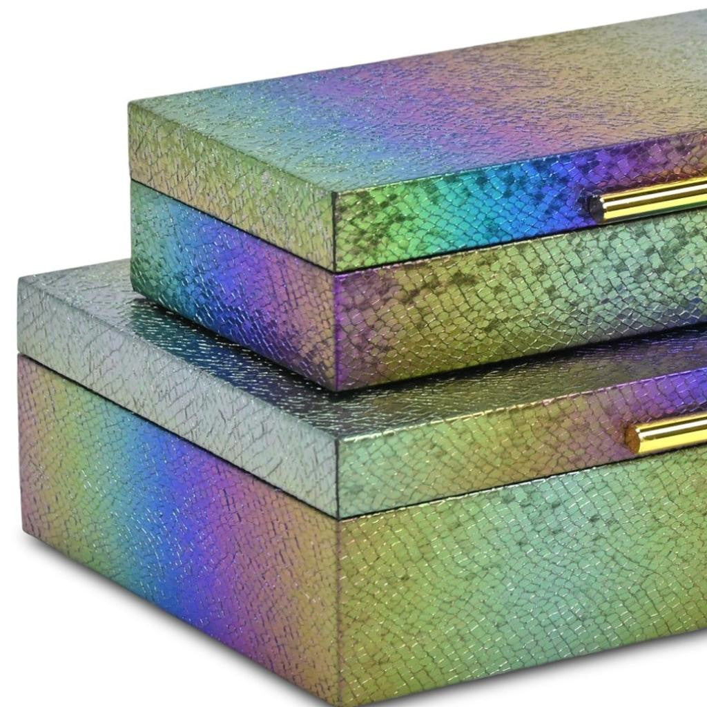 Set of Two Rainbow And Gold Faux Shagreen Nesting Storage Boxes With Lids Zum Inhalt springen