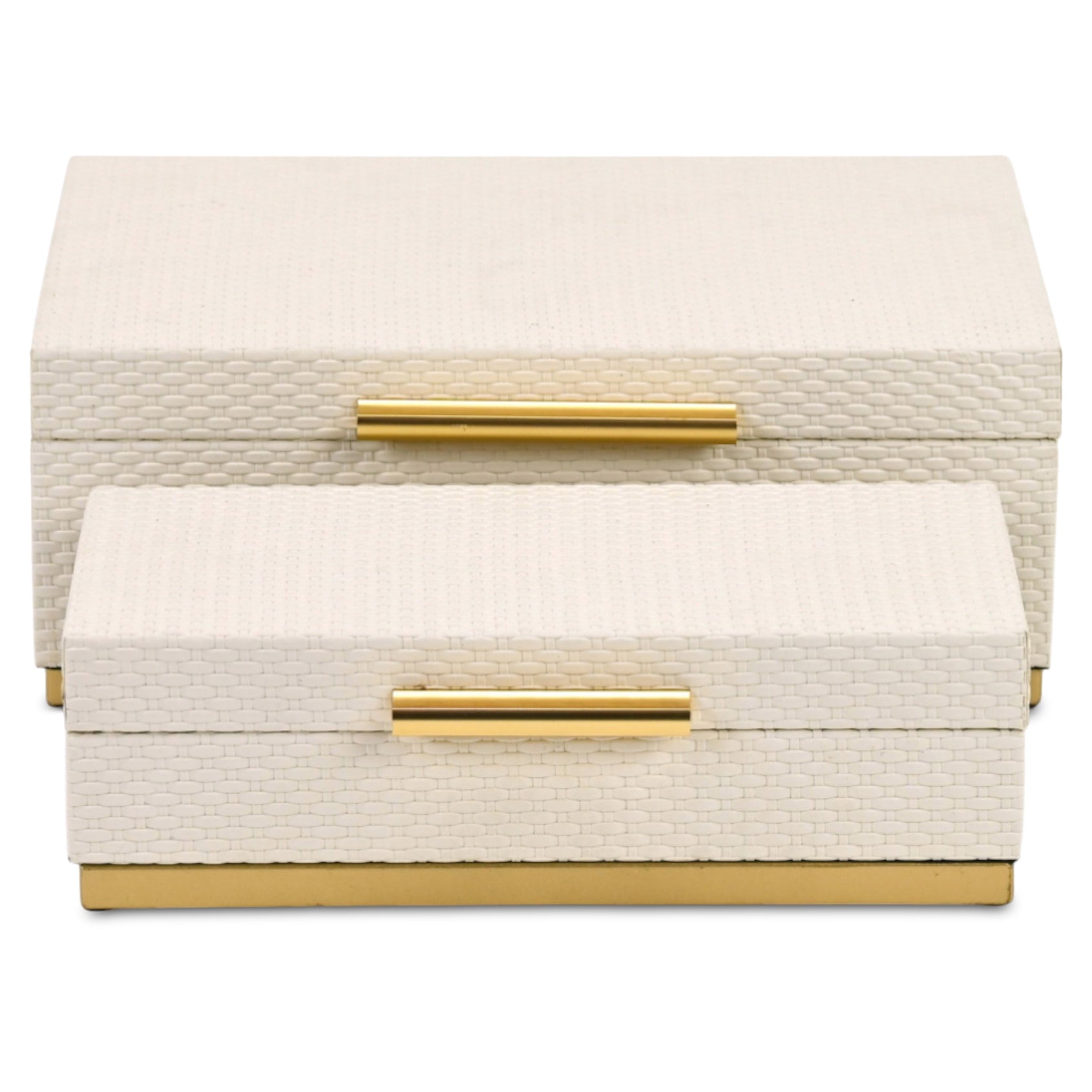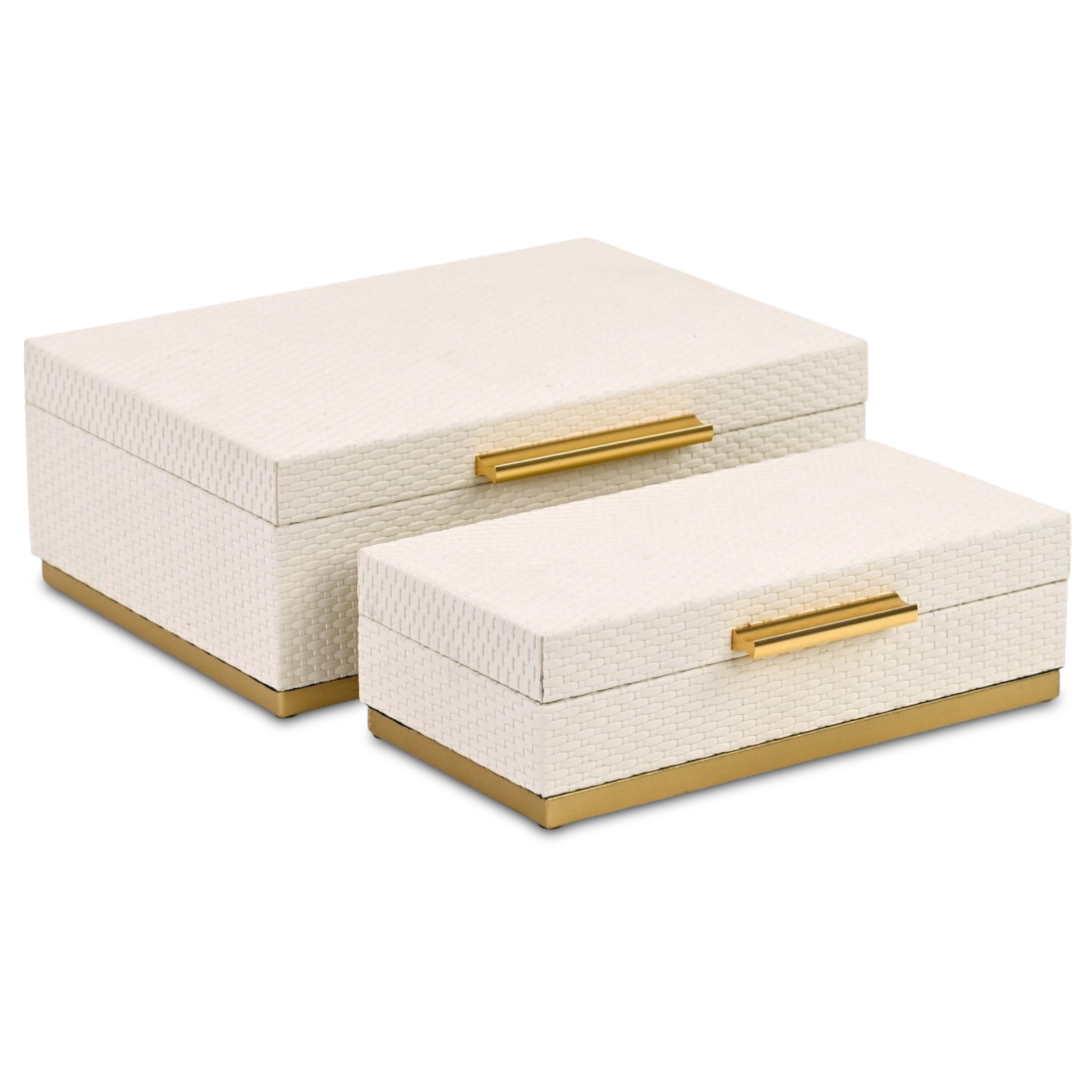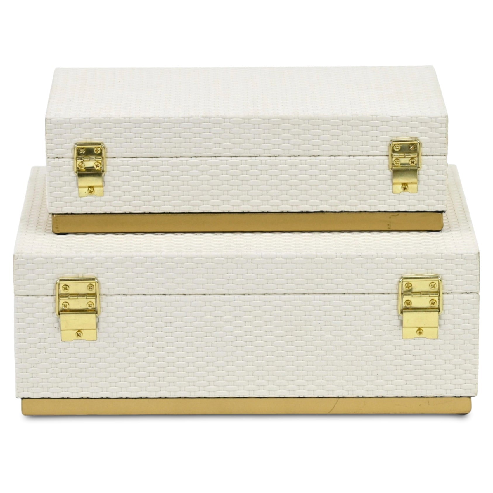 Set of Two White And Gold Nesting Decorative Storage Boxes With Lids Zum Inhalt springen