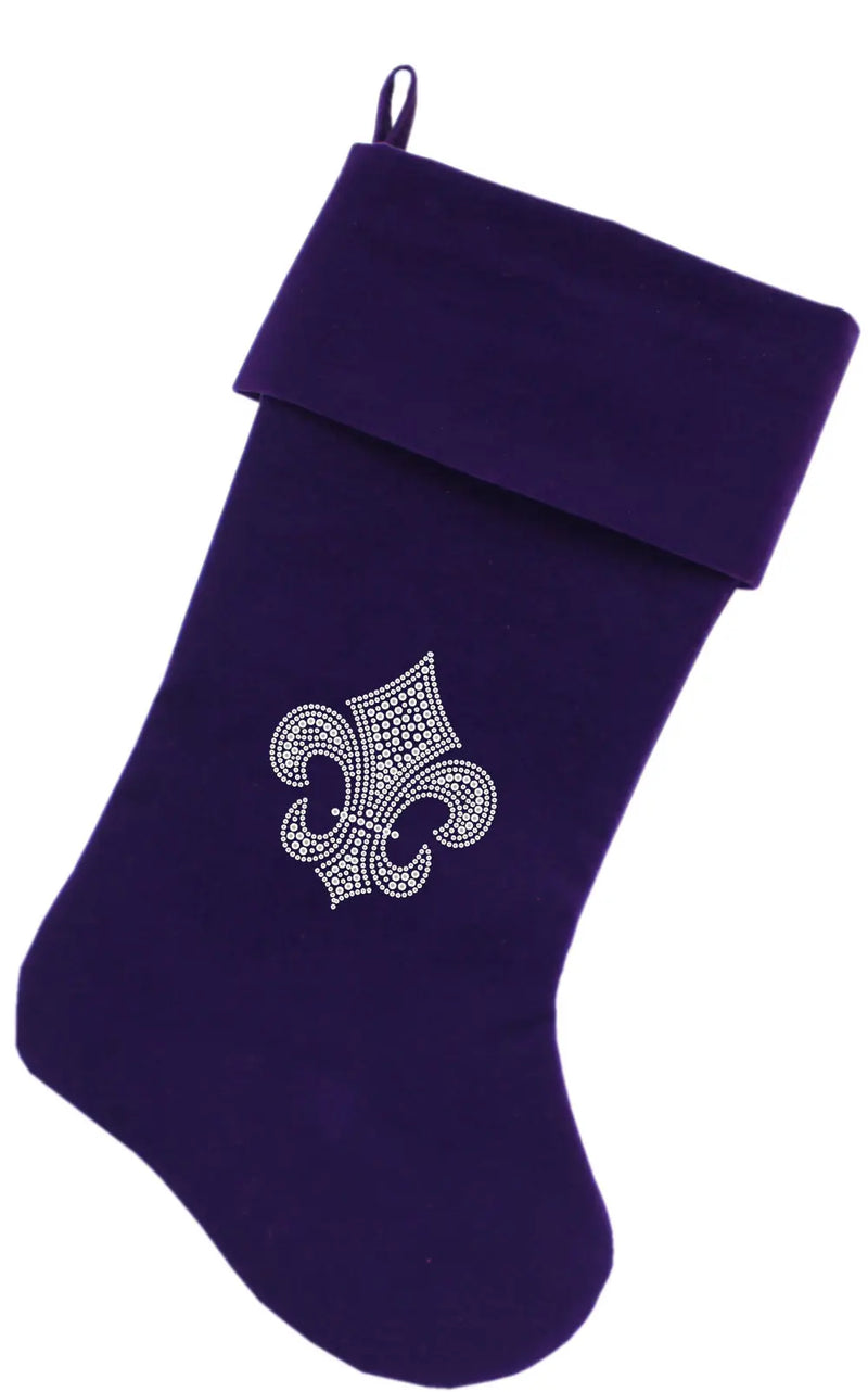 Silver Fleur De Lis Rhinestone 18 Inch Velvet Christmas Stocking Purple
