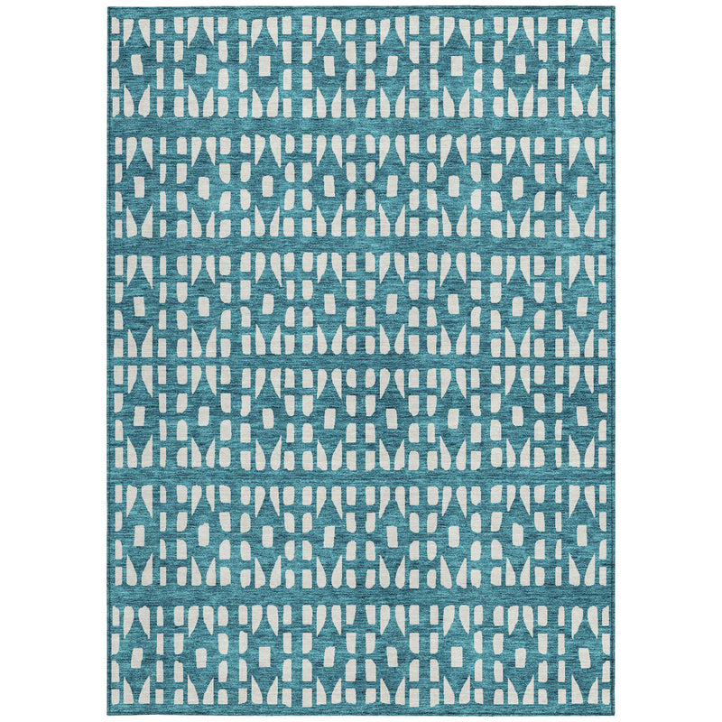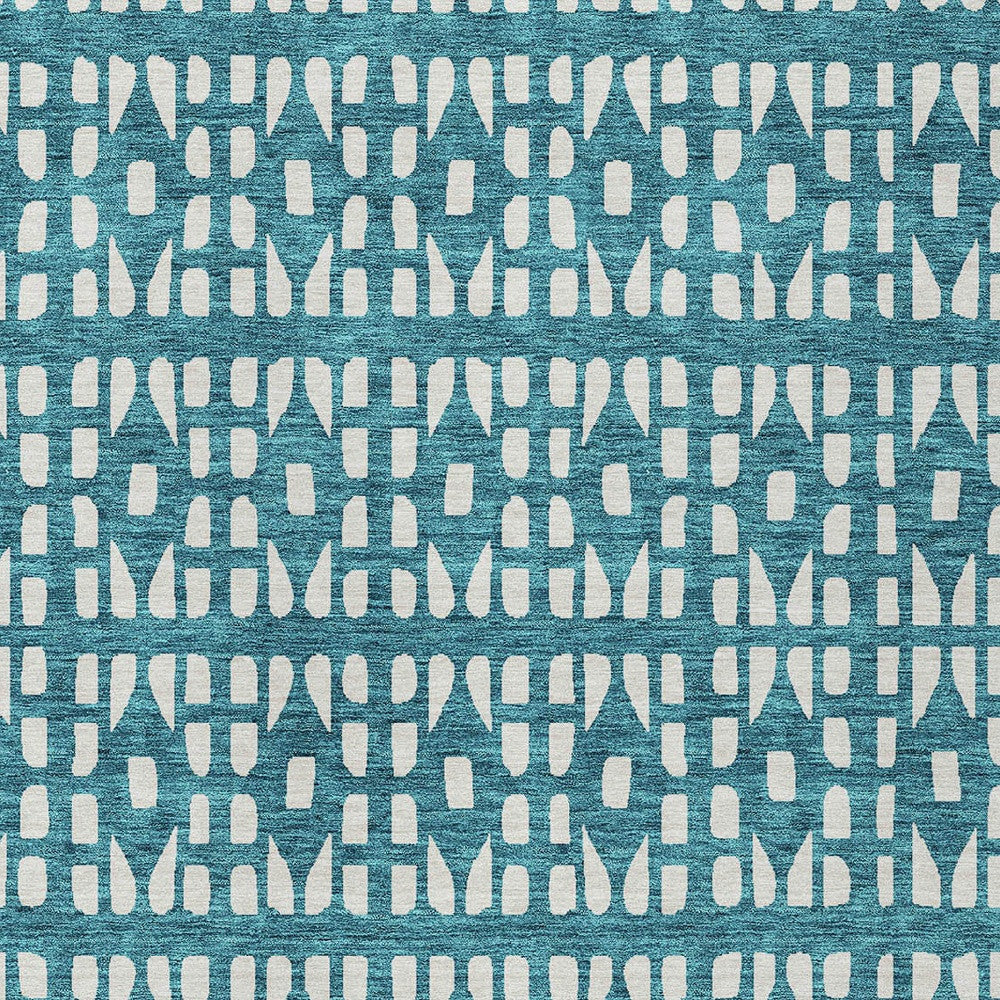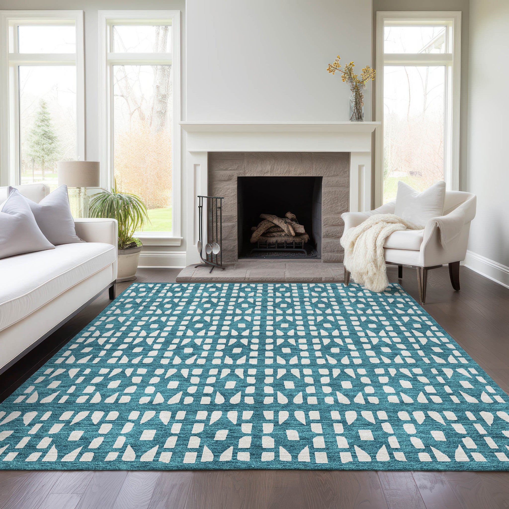 10' X 14' Teal Blue And Ivory Geometric Washable Indoor Outdoor Area Rug