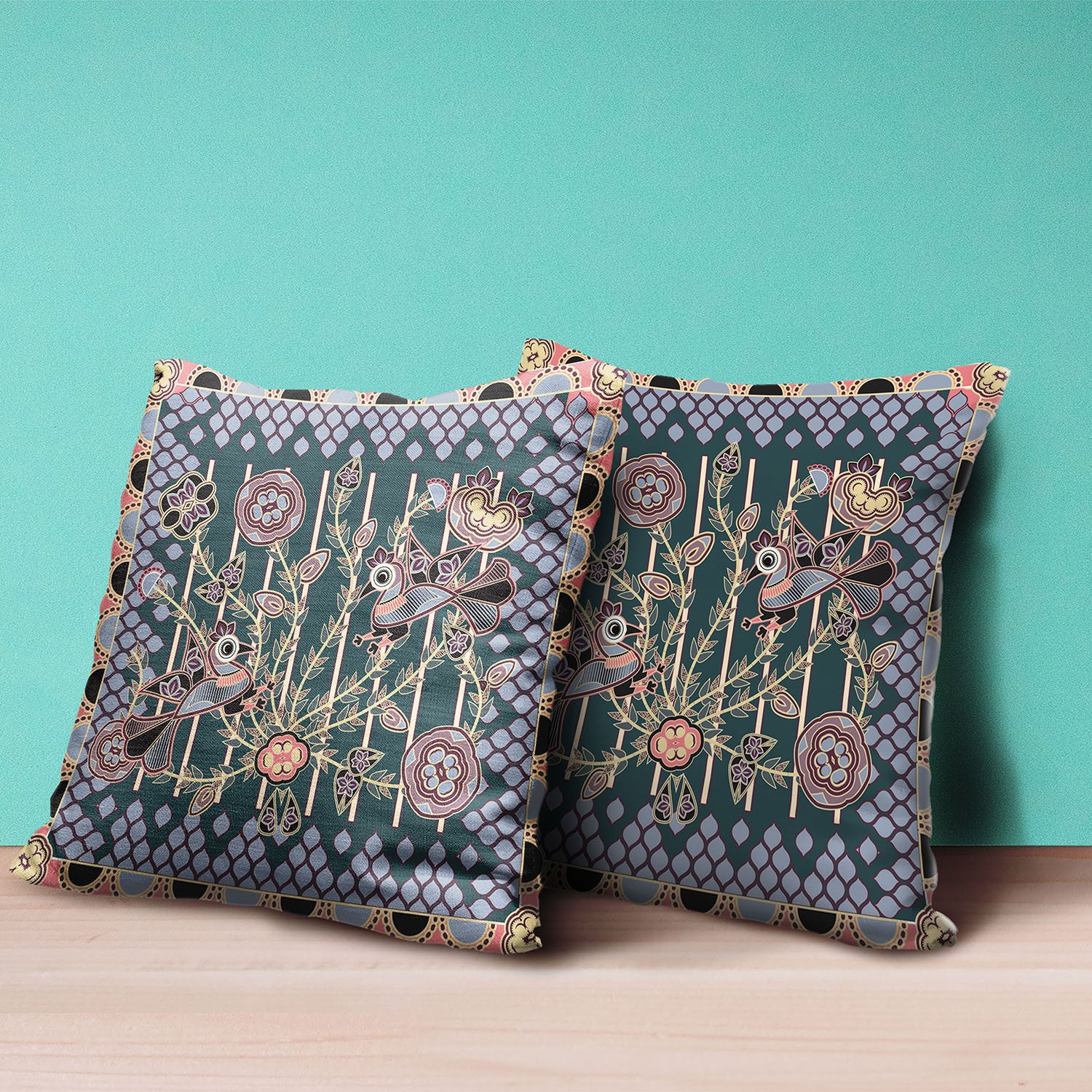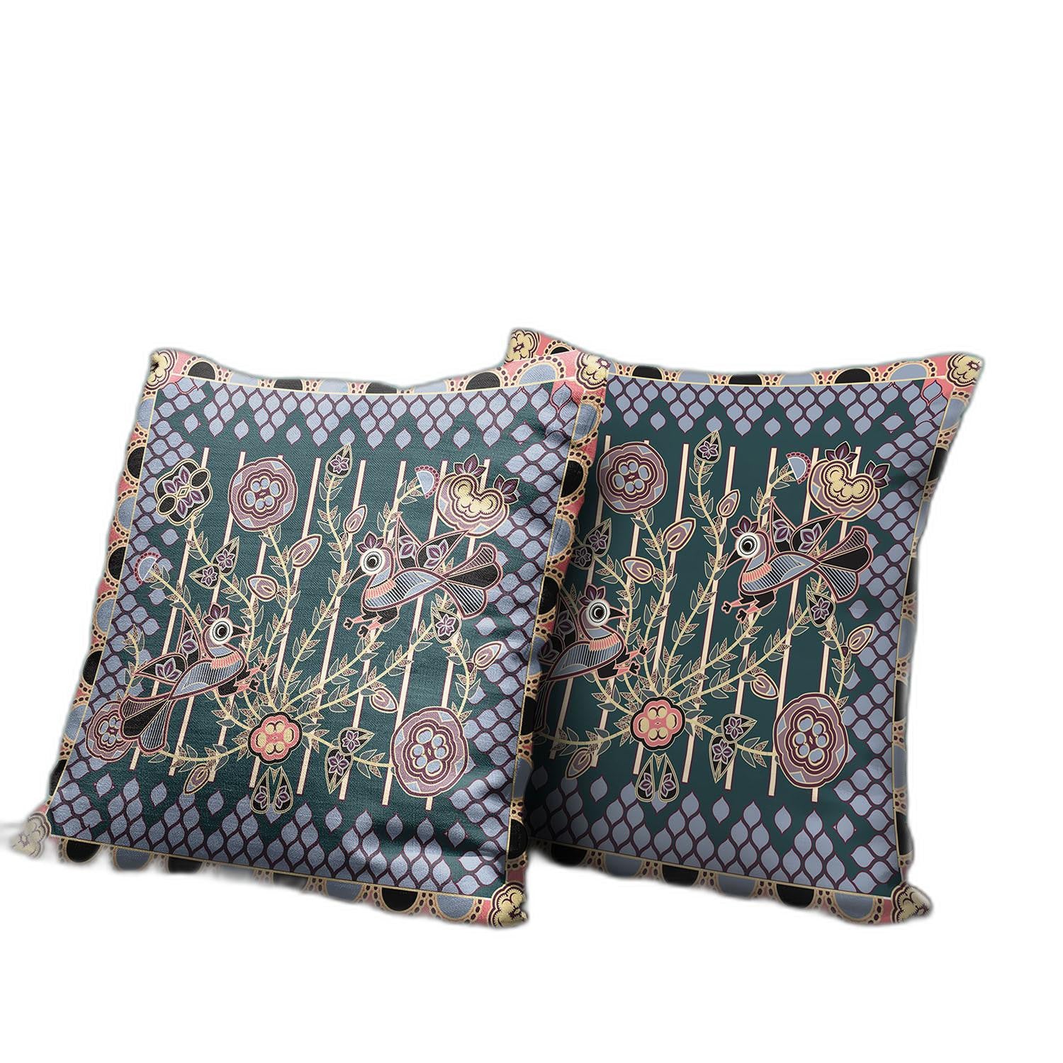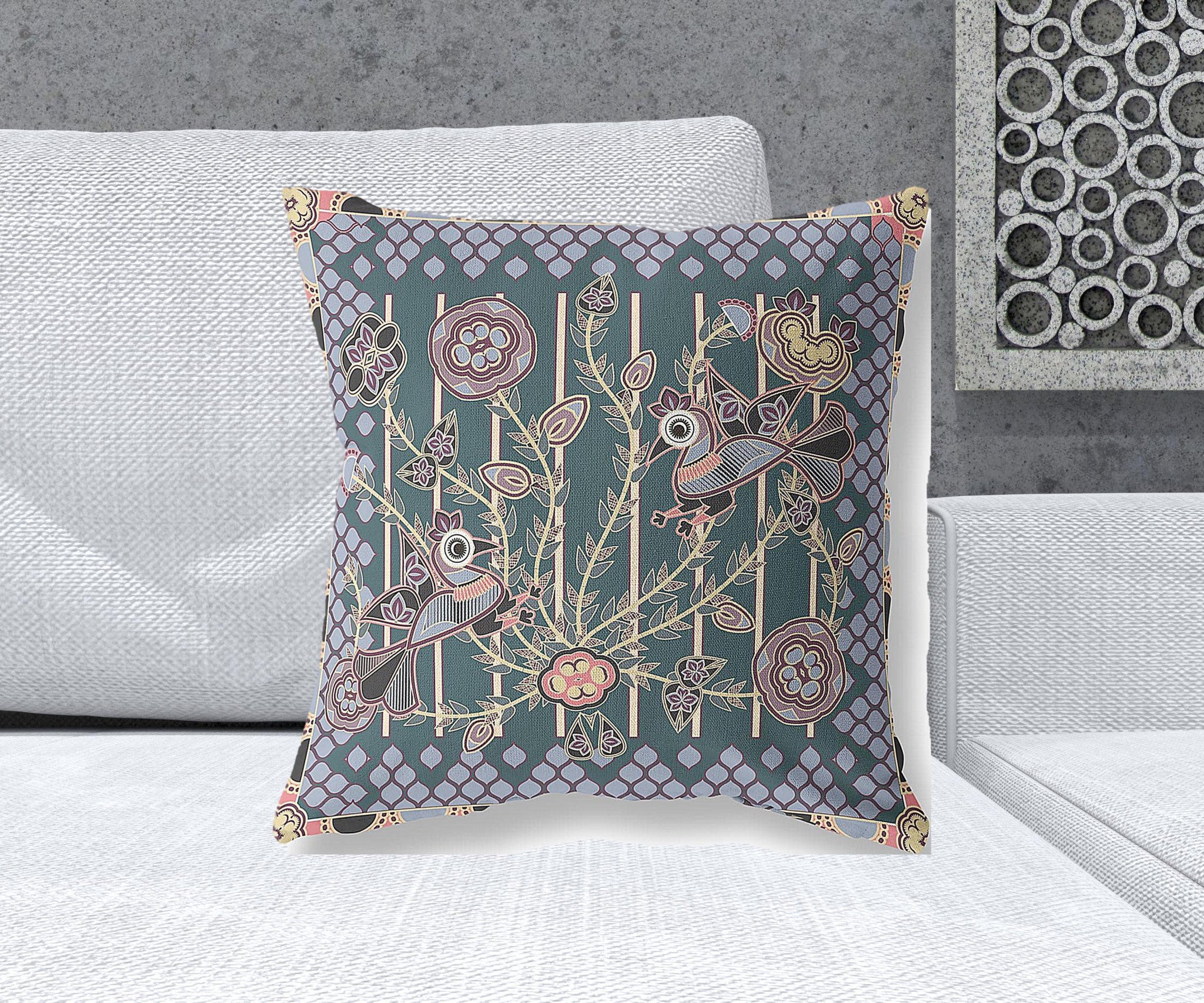 20" x 20" Blue and Pink Peacock Blown Seam Floral Indoor Outdoor Throw Pillow