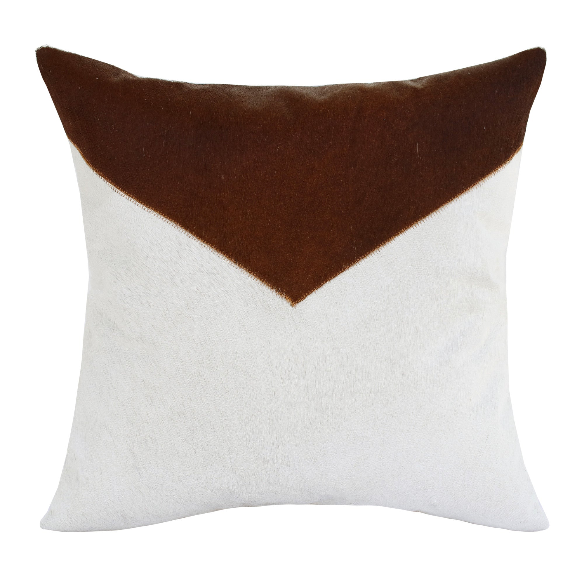 20" X 20" Brown and Ivory Geometric Faux Leather Zippered Pillow