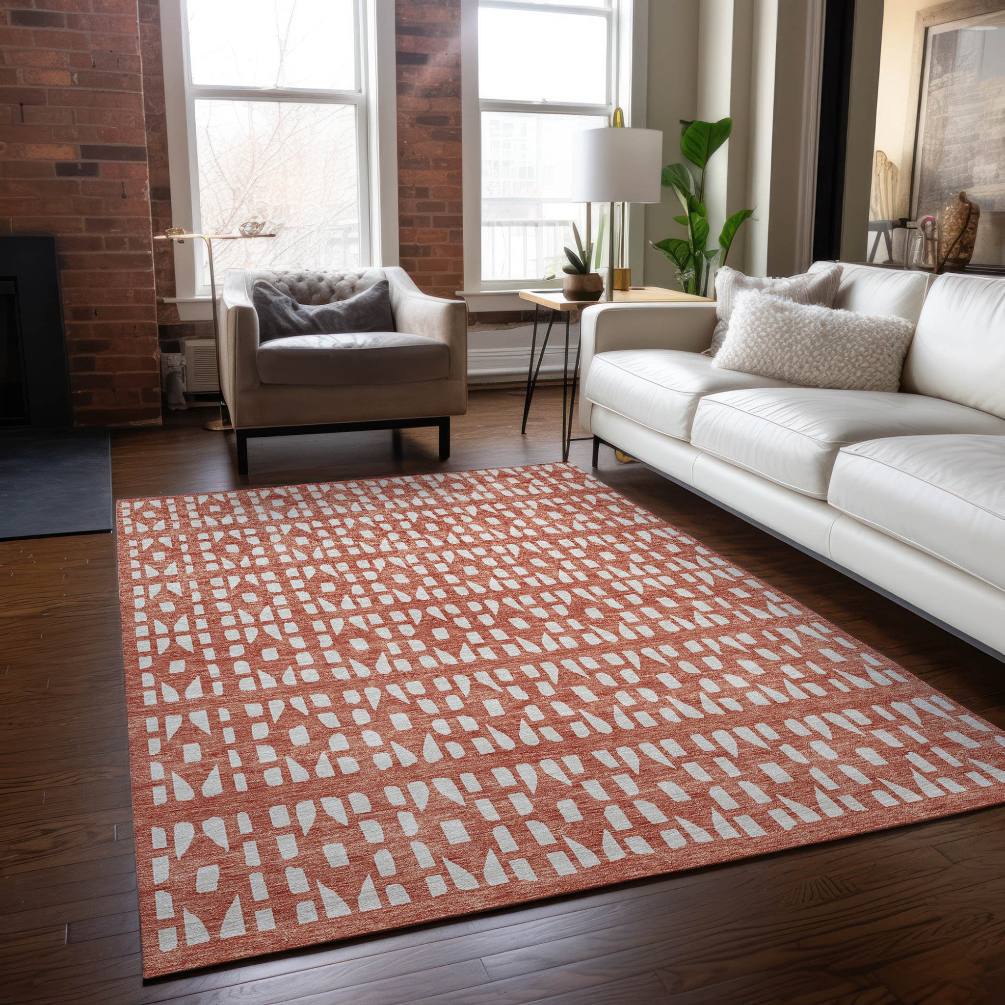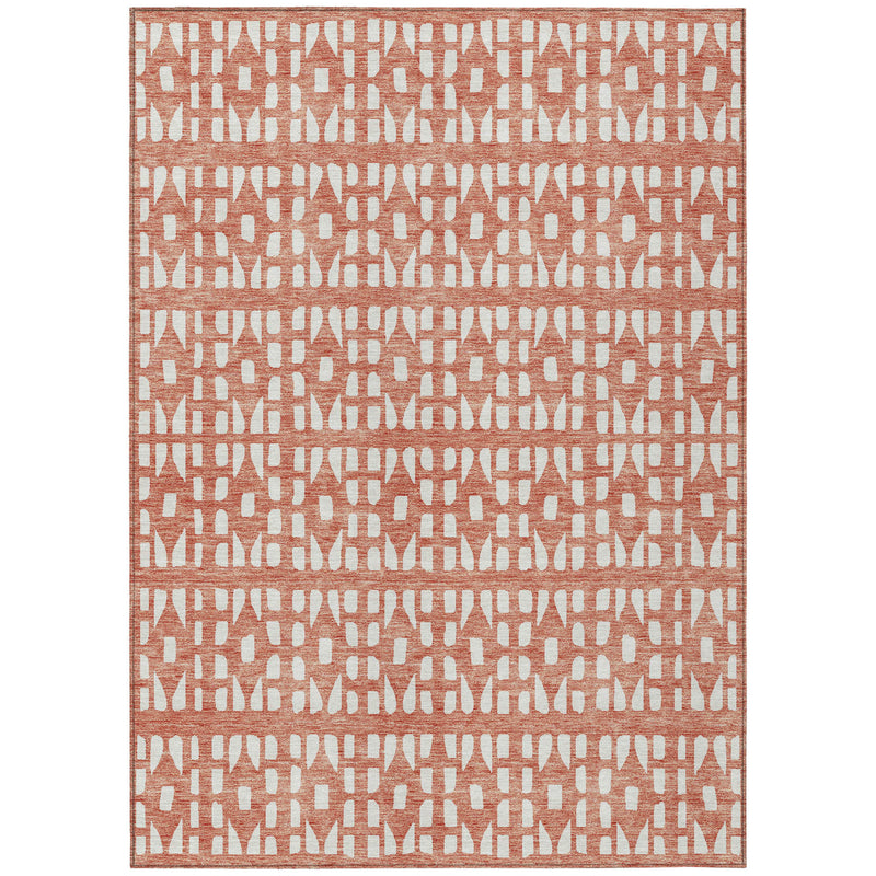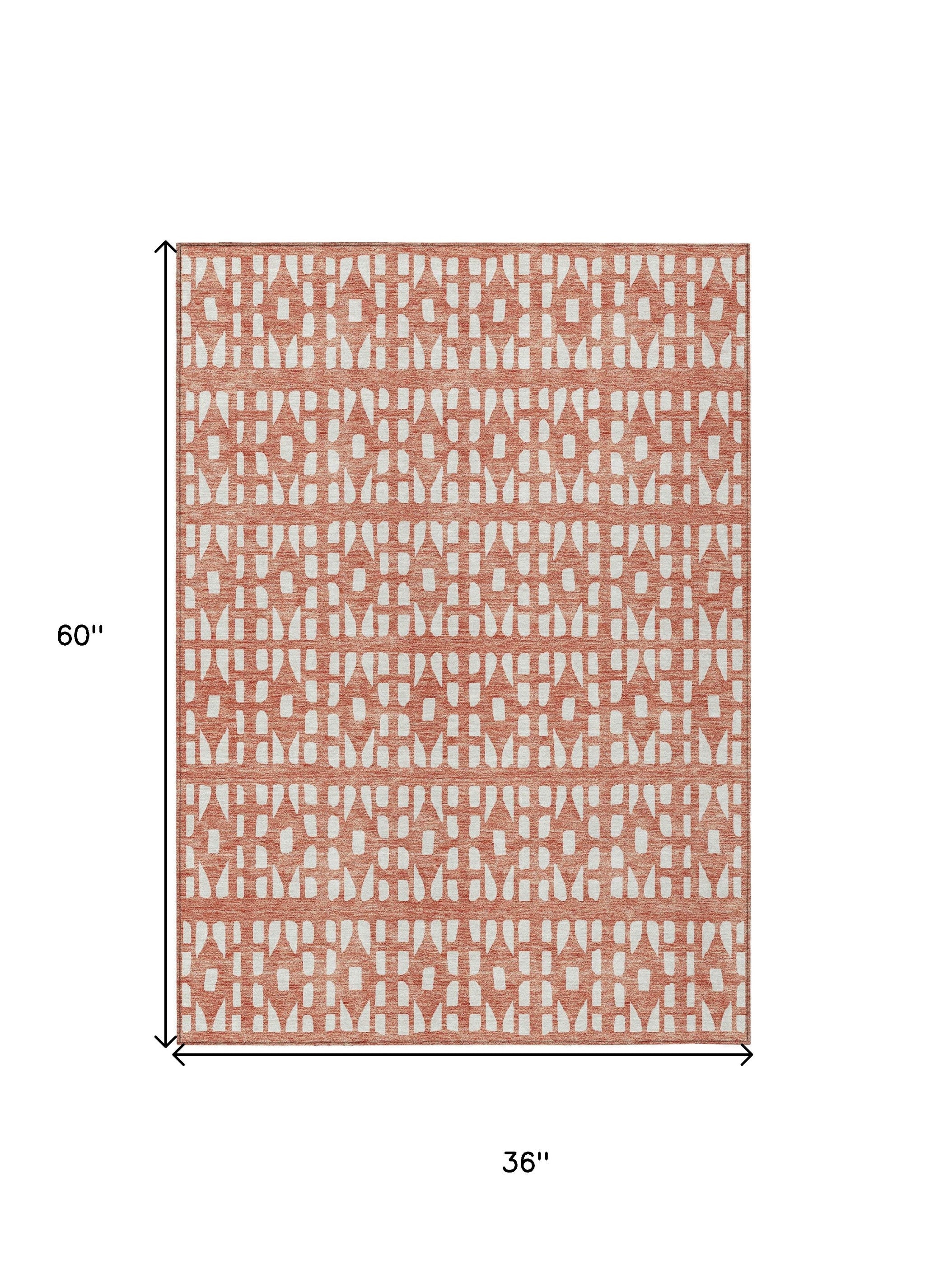 3' X 5' Salmon And Ivory Geometric Washable Indoor Outdoor Area Rug