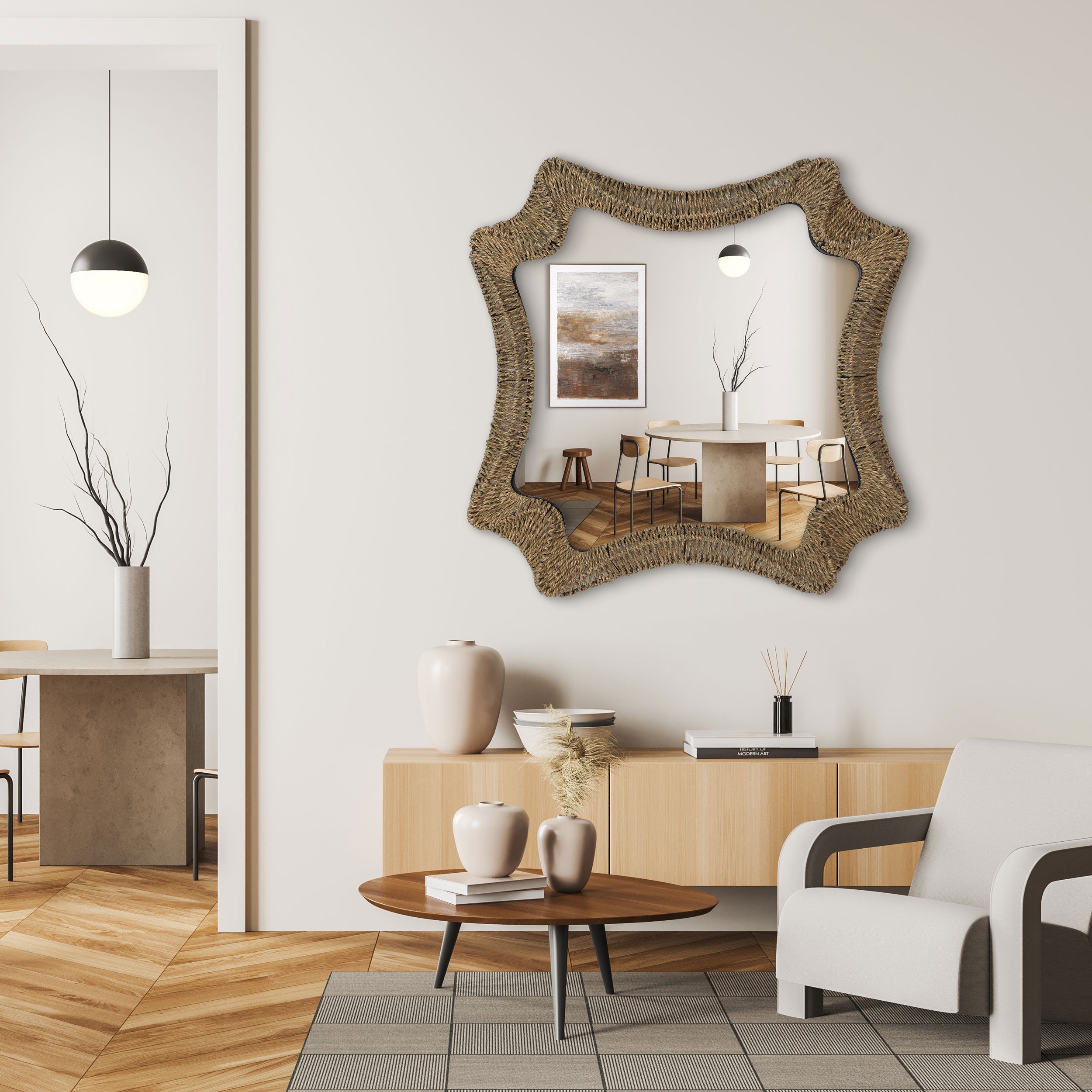 38" Brown Abstract Floating Rope Framed Accent Mirror