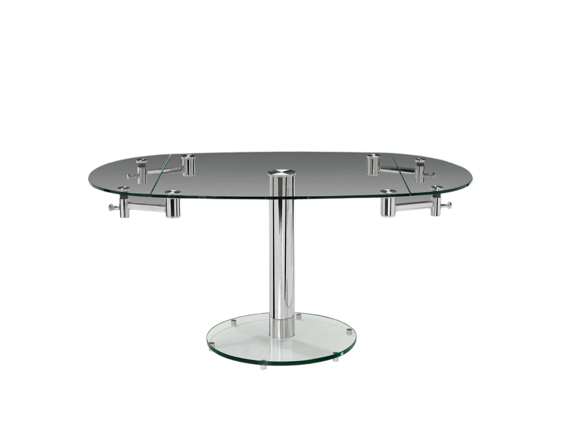 40" Clear and Silver Glass and Metal Self-Storing Leaf Motion Extendable Dining Table