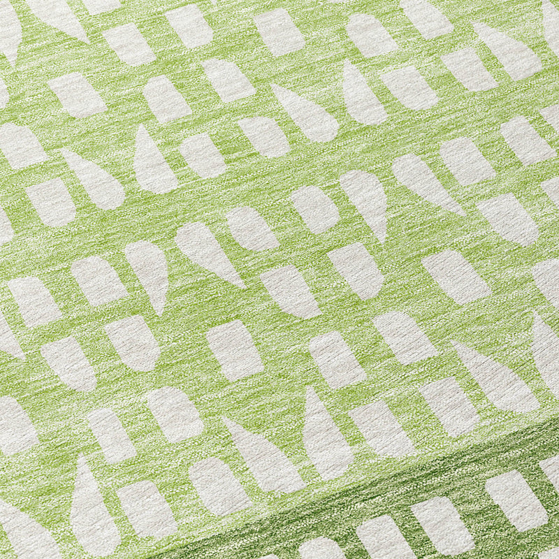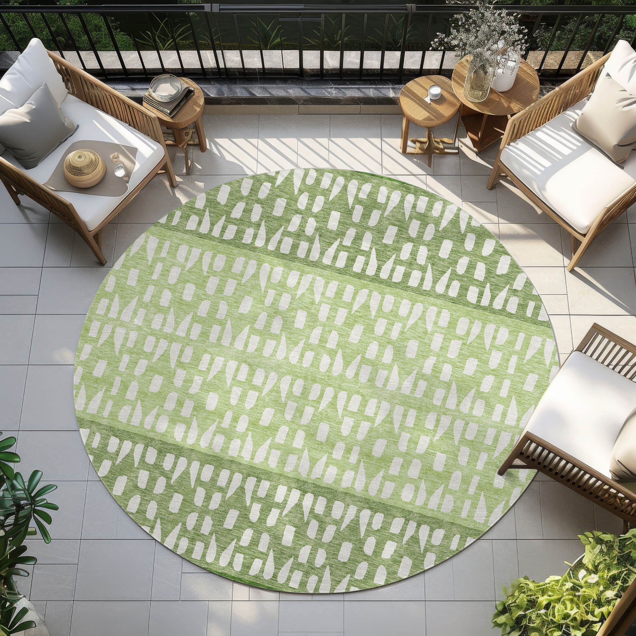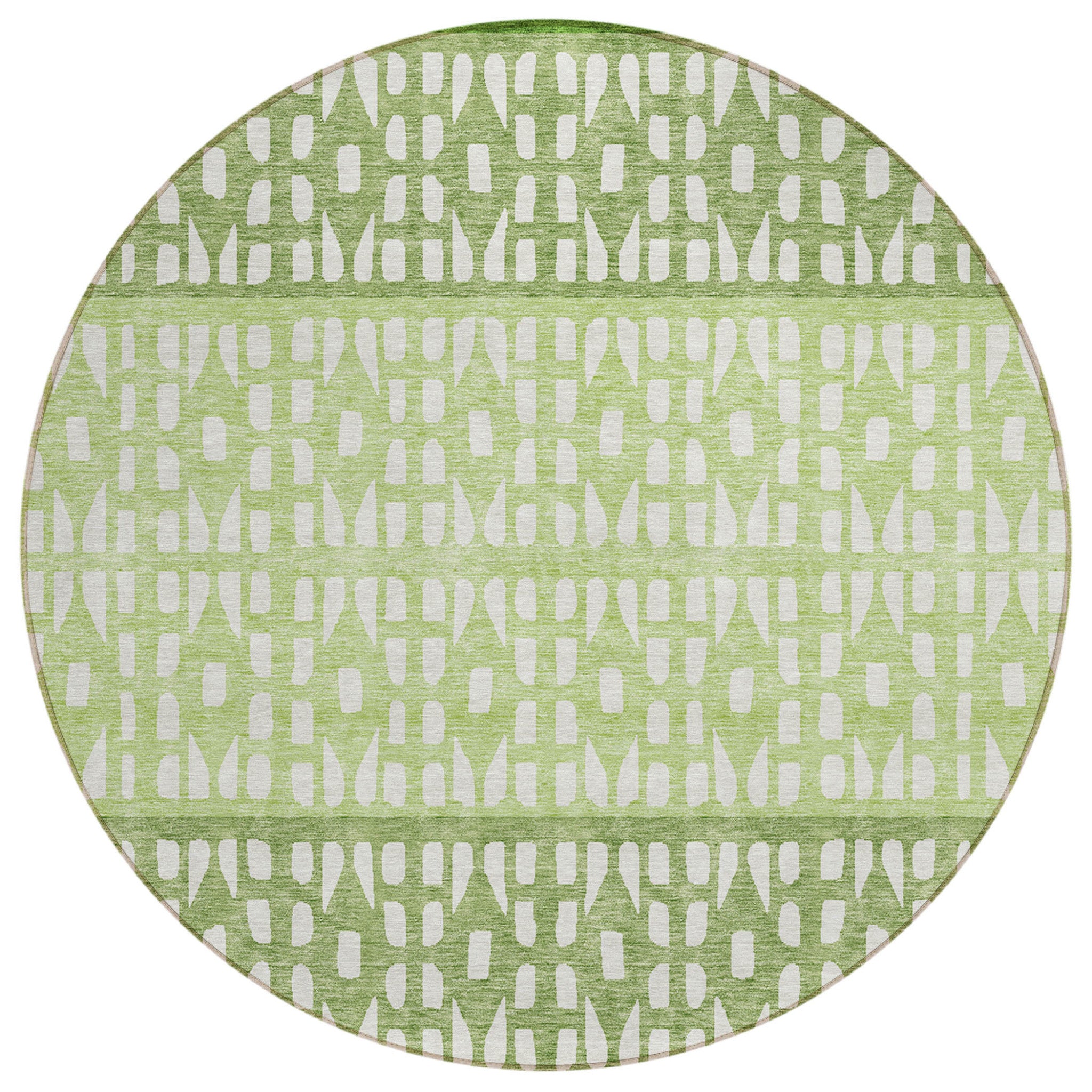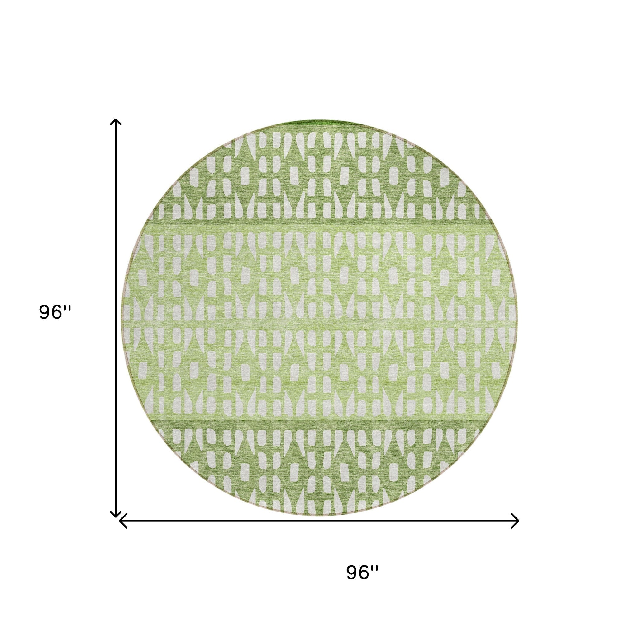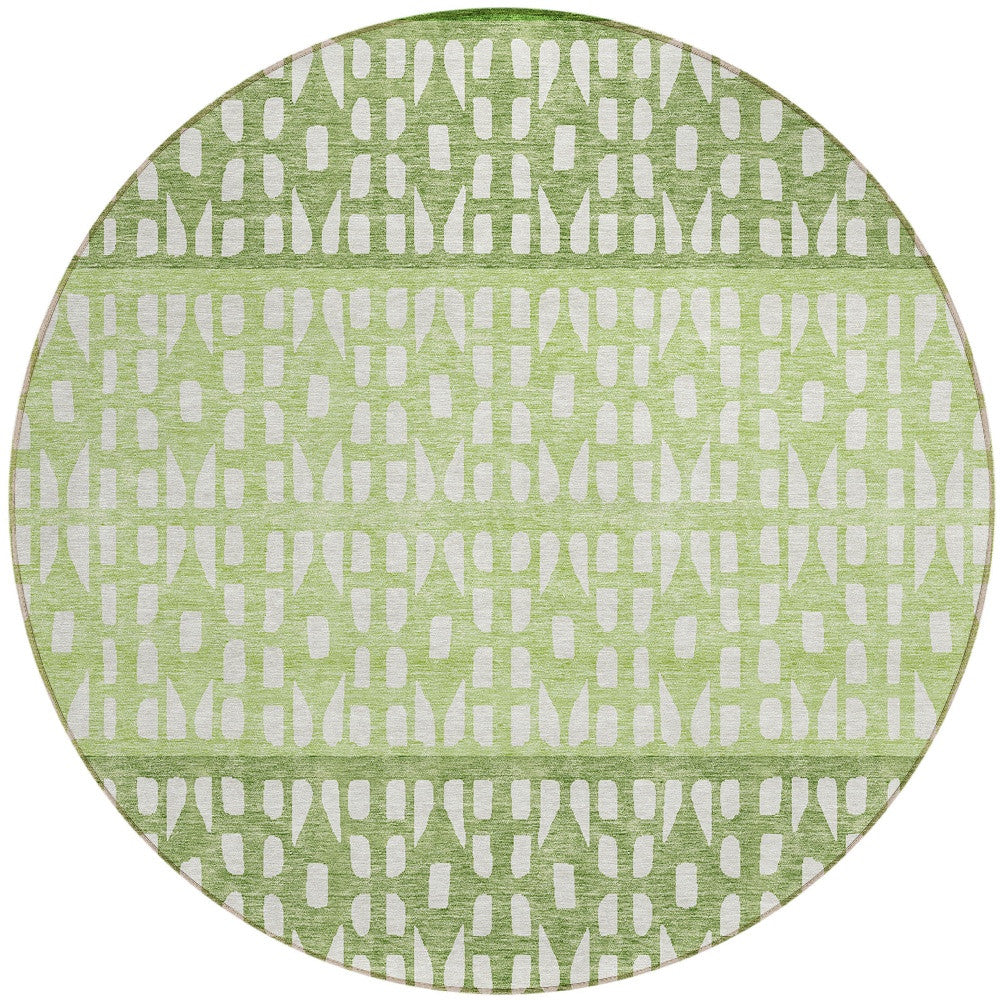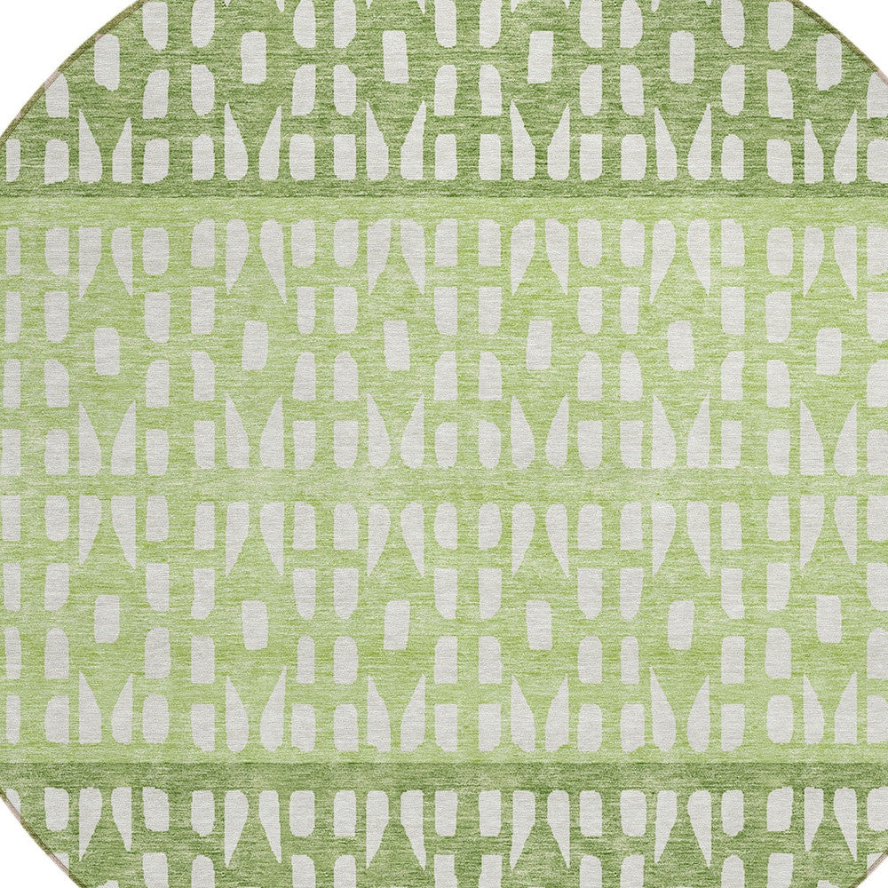 8' Green Sage And Ivory Round Geometric Washable Indoor Outdoor Area Rug