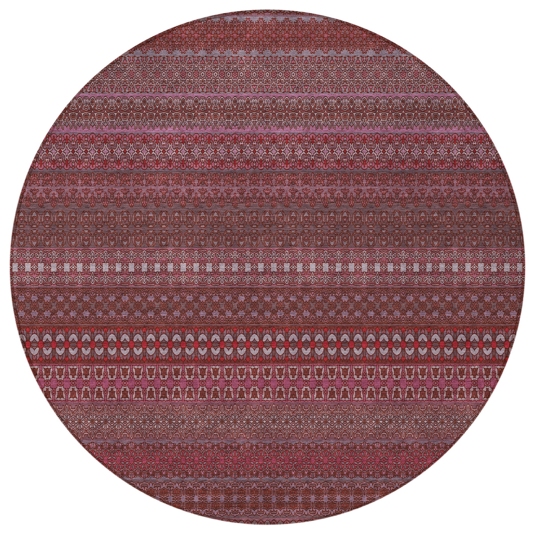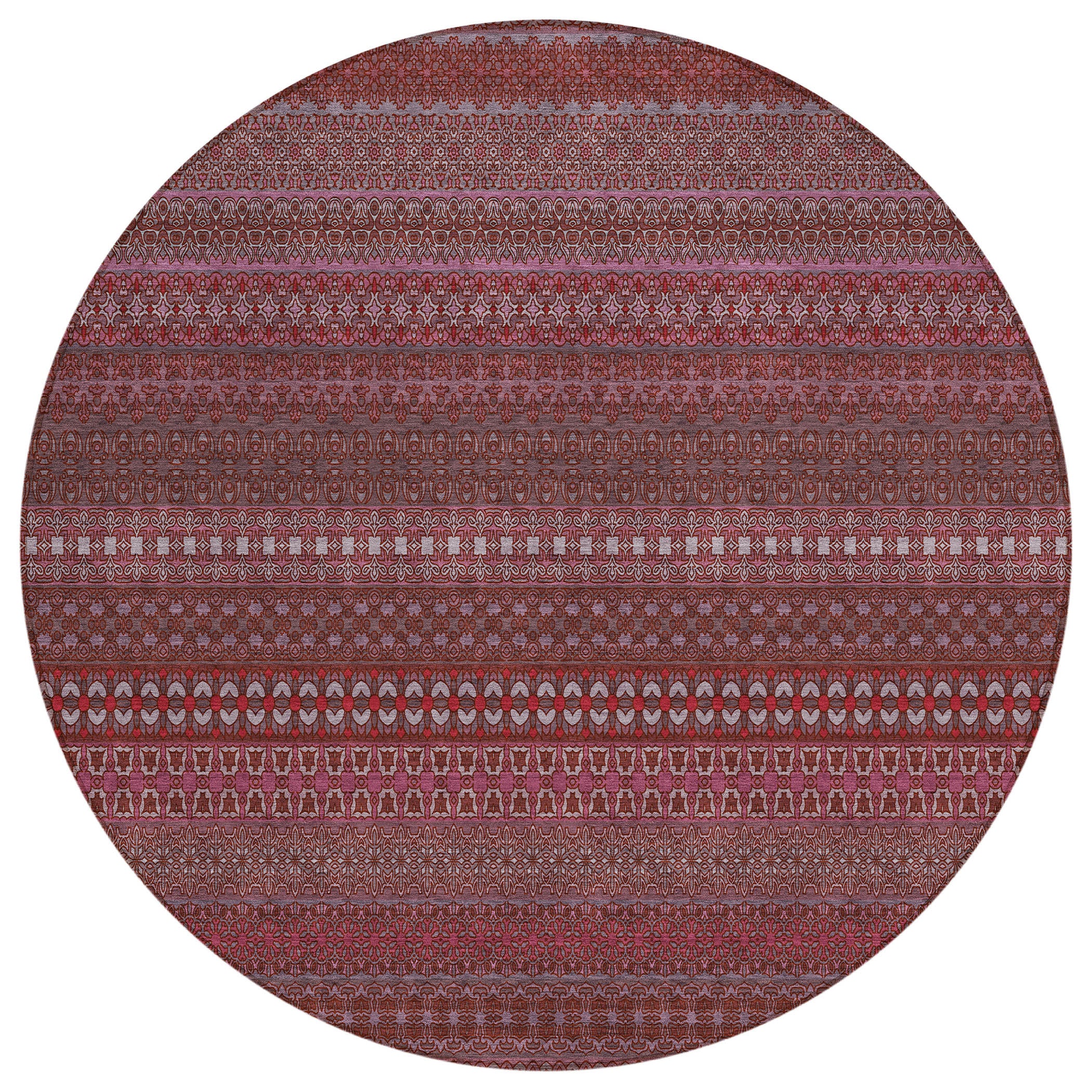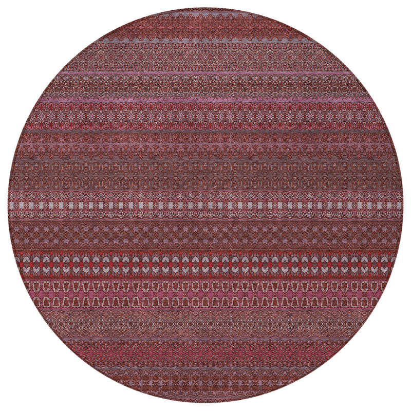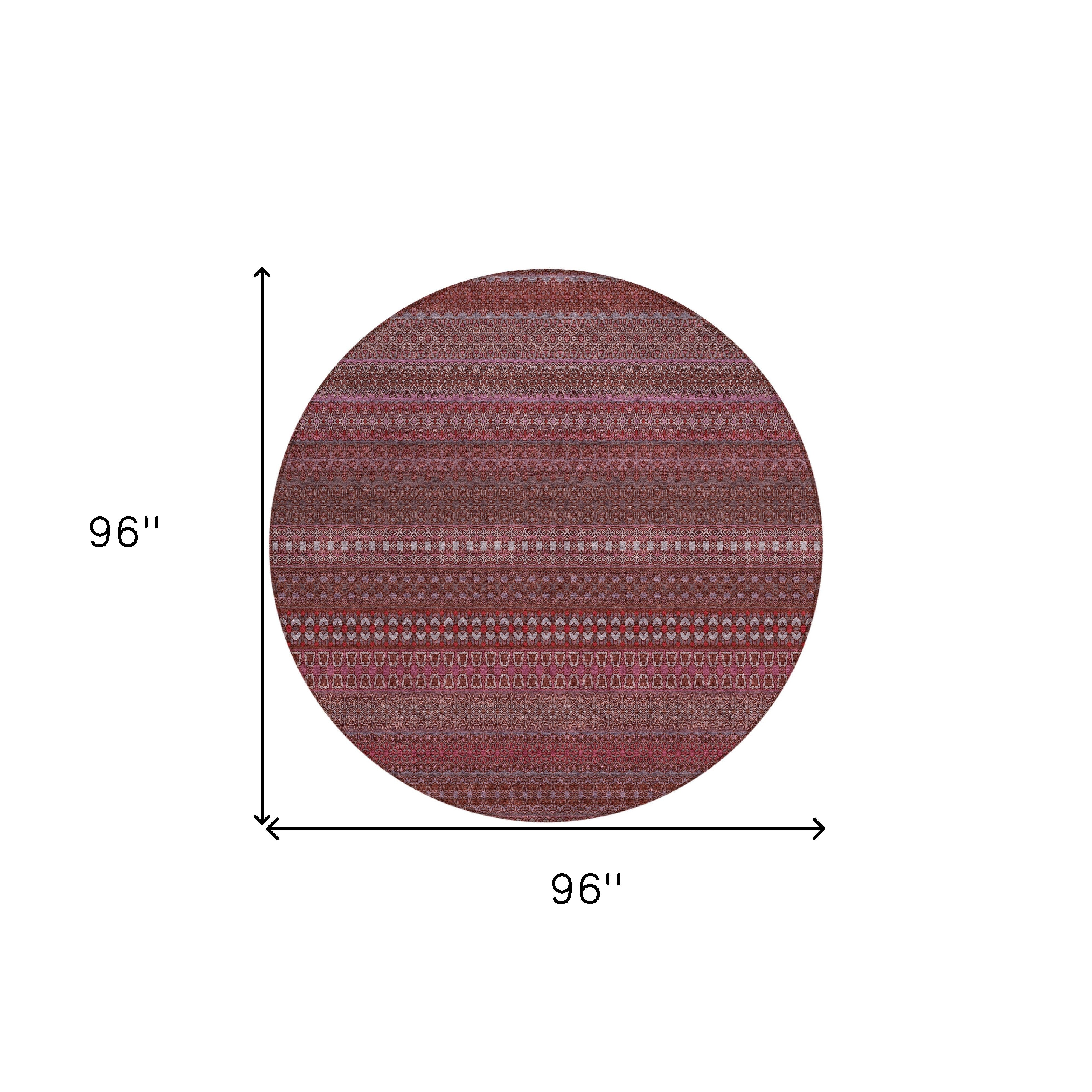 8' Round Merlot Round Striped Washable Non Skid Indoor Outdoor Area Rug
