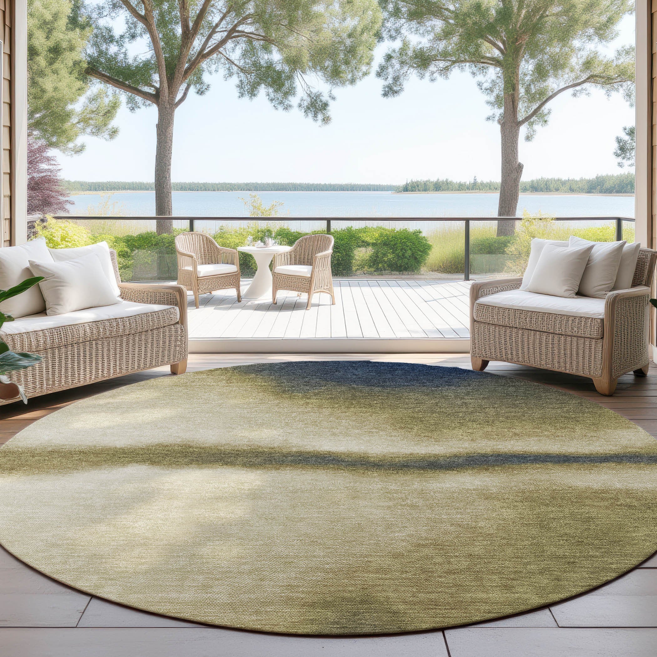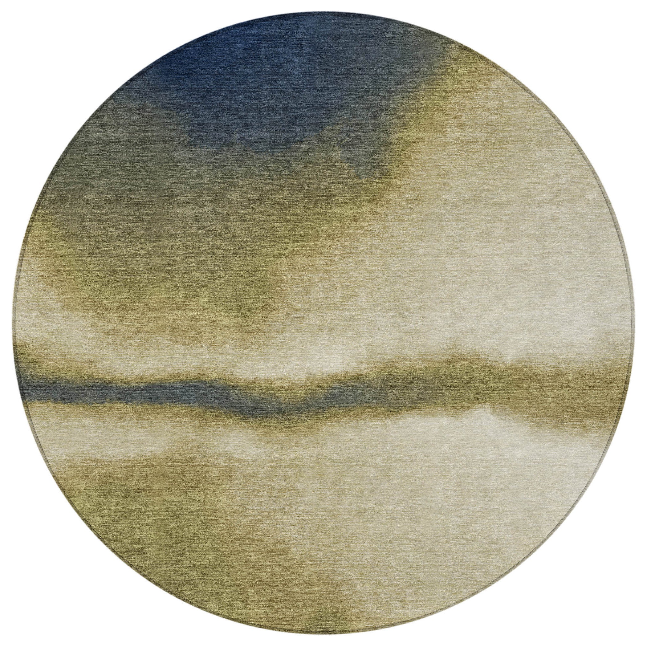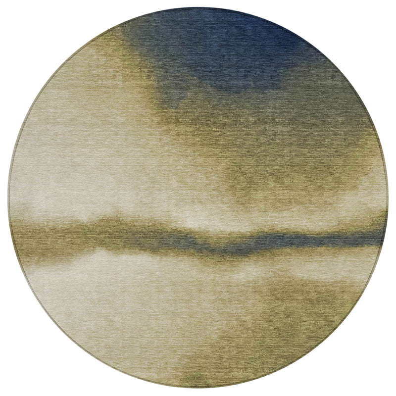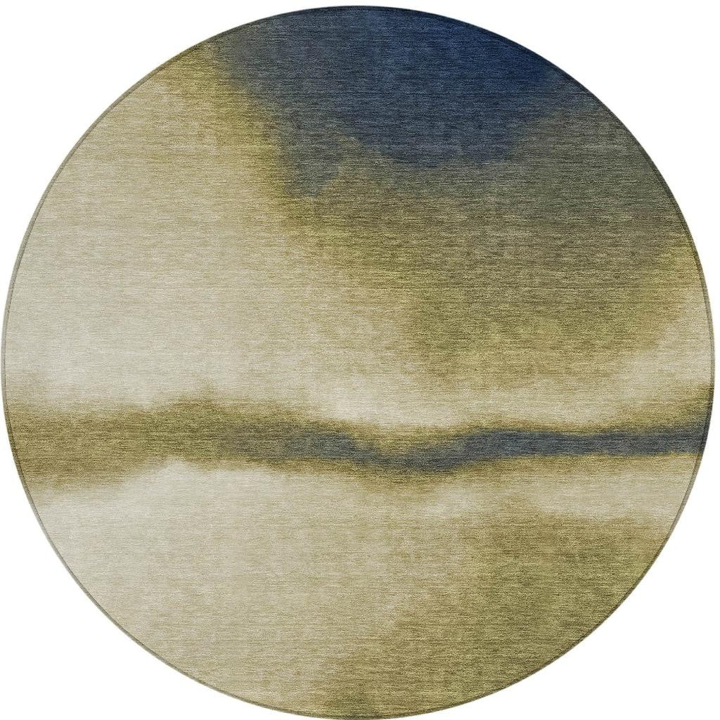 8' Wheat Blue And Beige Round Abstract Washable Indoor Outdoor Area Rug