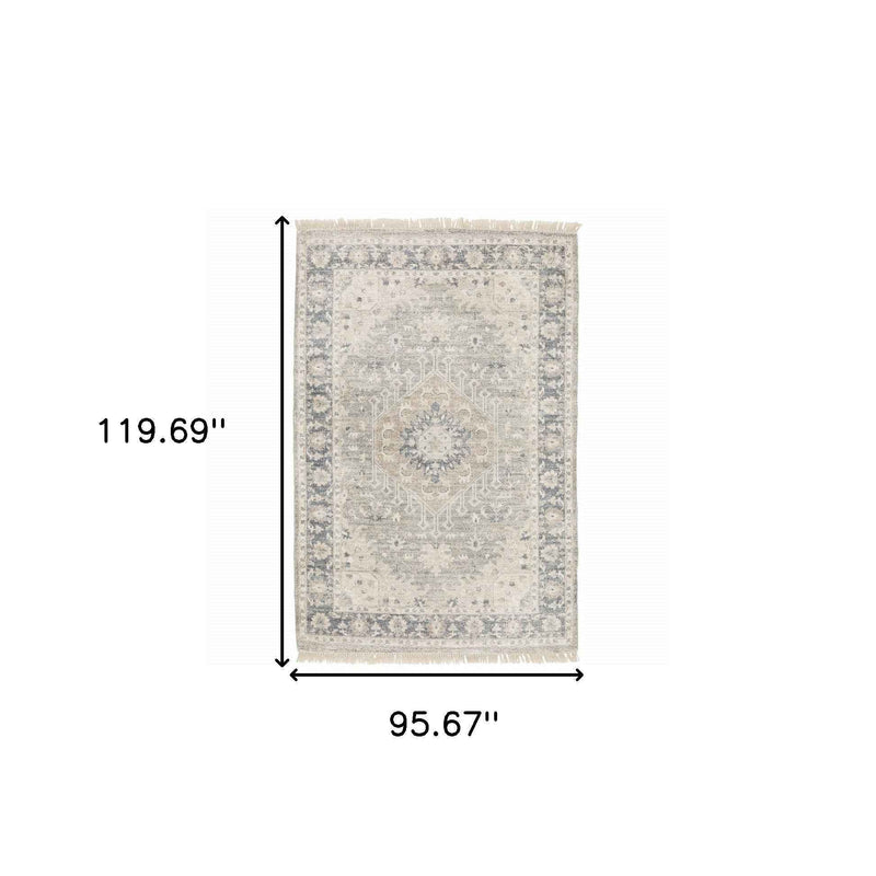 8' X 10' Beige And Grey Oriental Hand Loomed Stain Resistant Area Rug With Fringe