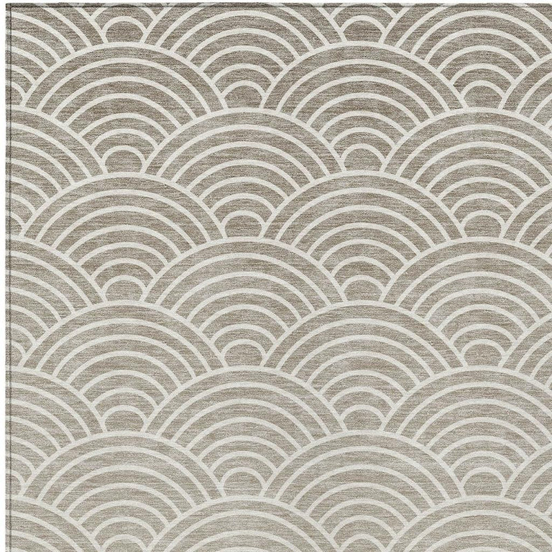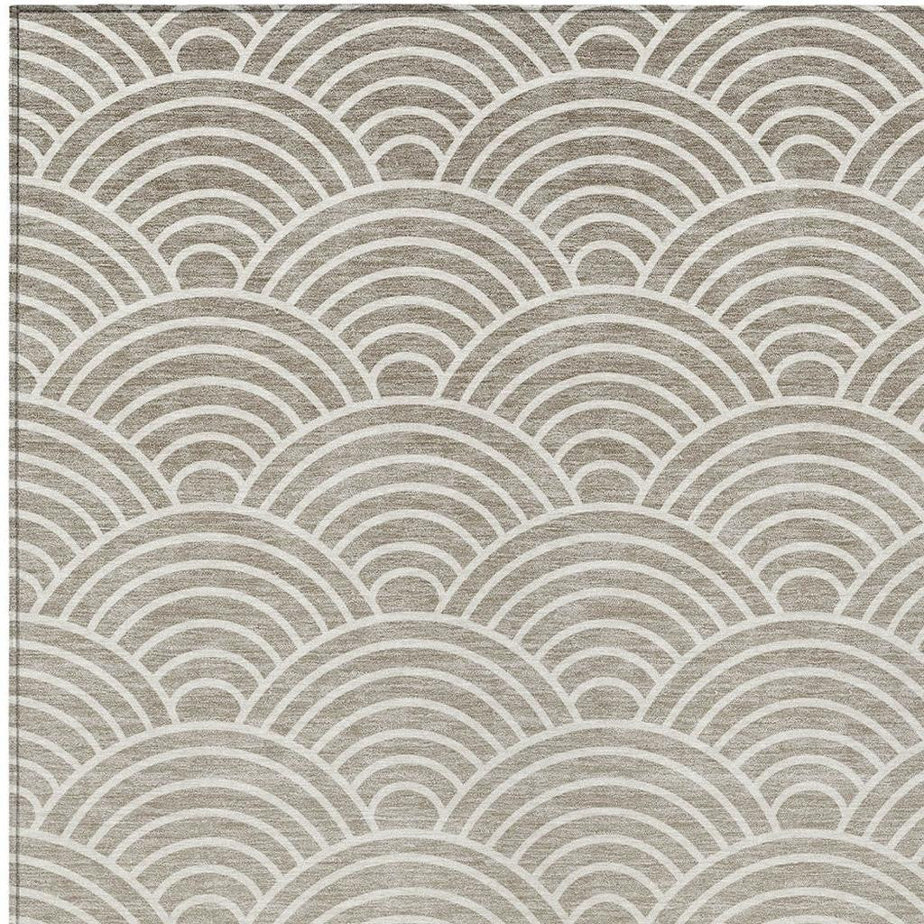 8' X 10' Ivory Beige And Brown Geometric Washable Indoor Outdoor Area Rug