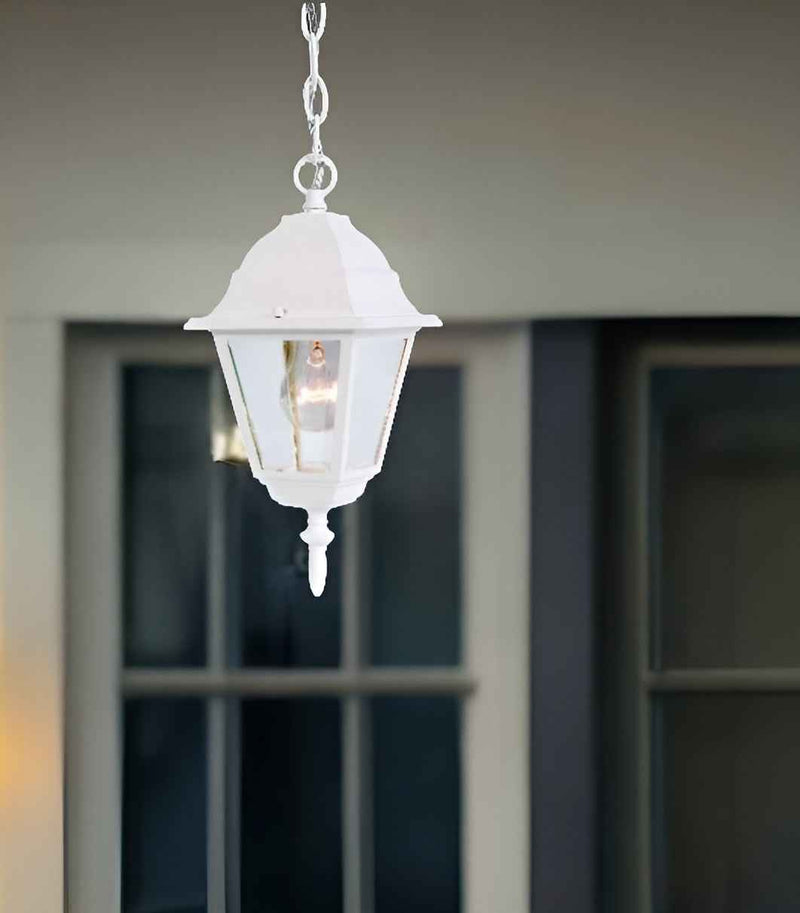 Distressed White Beveled Glass Outdoor Hanging Light
