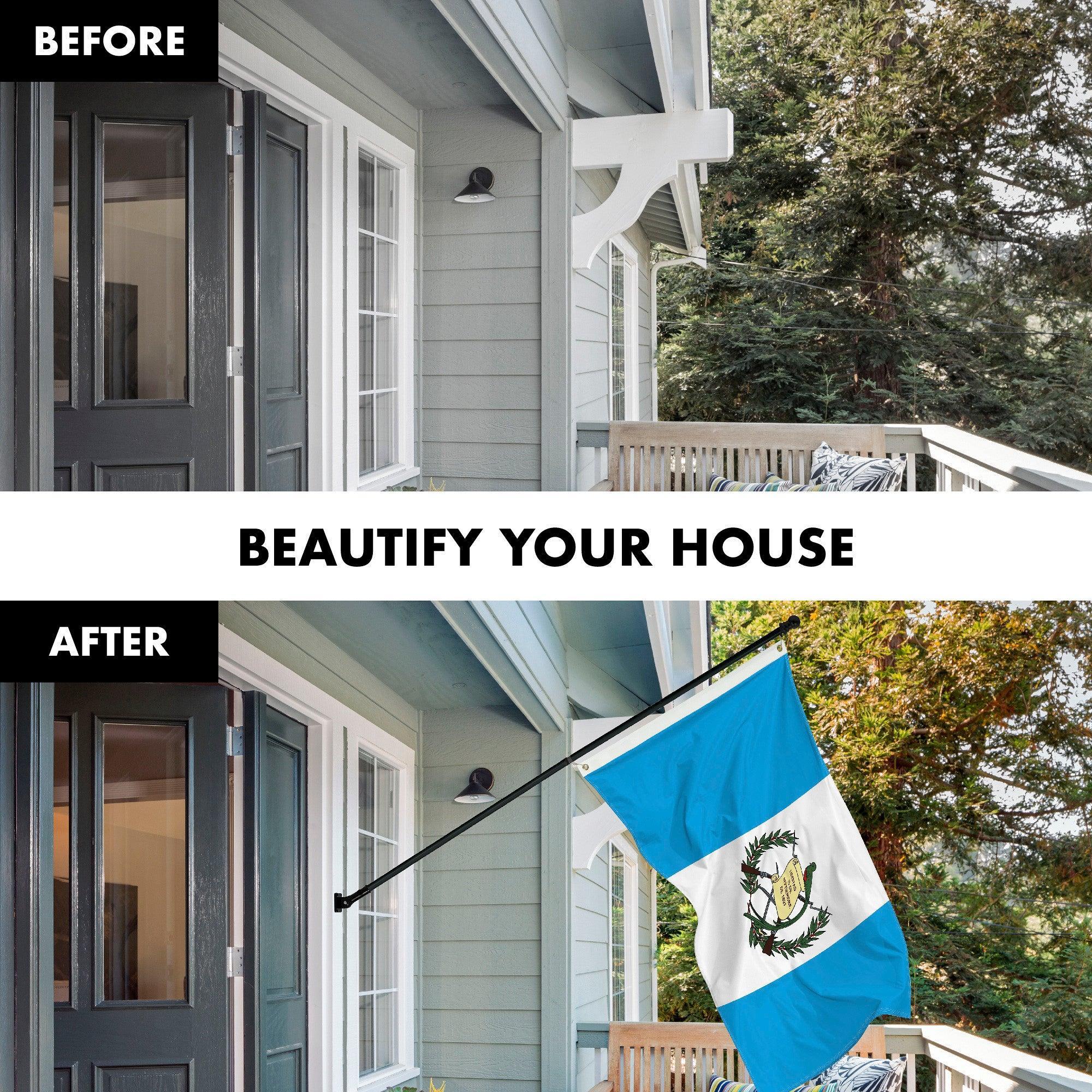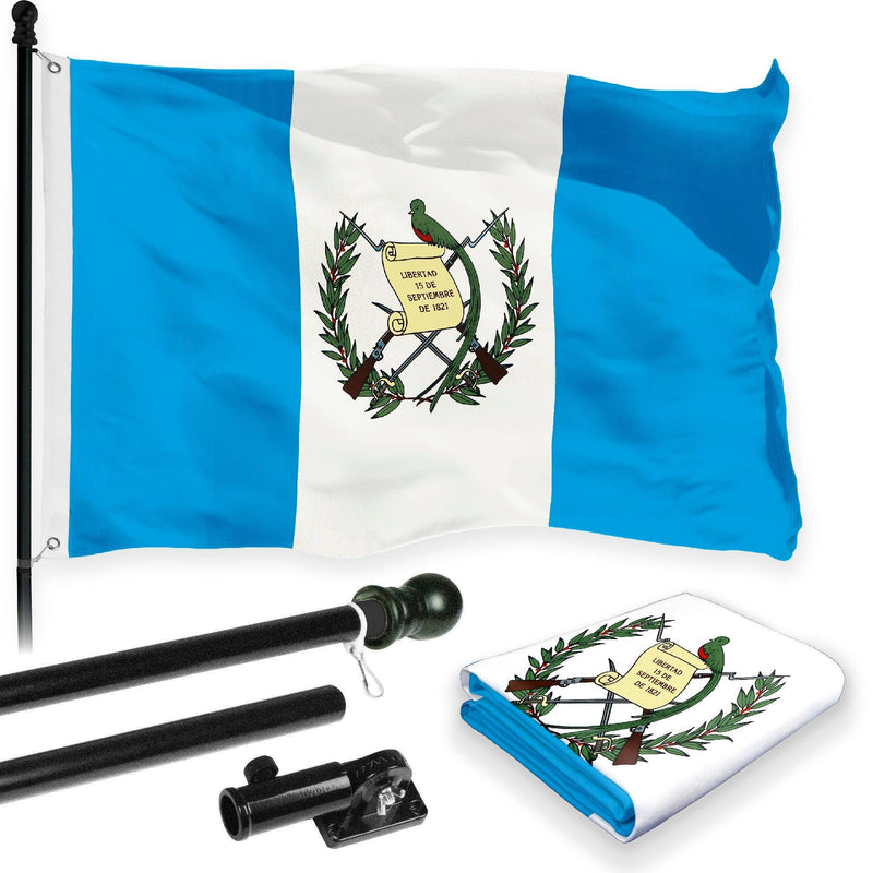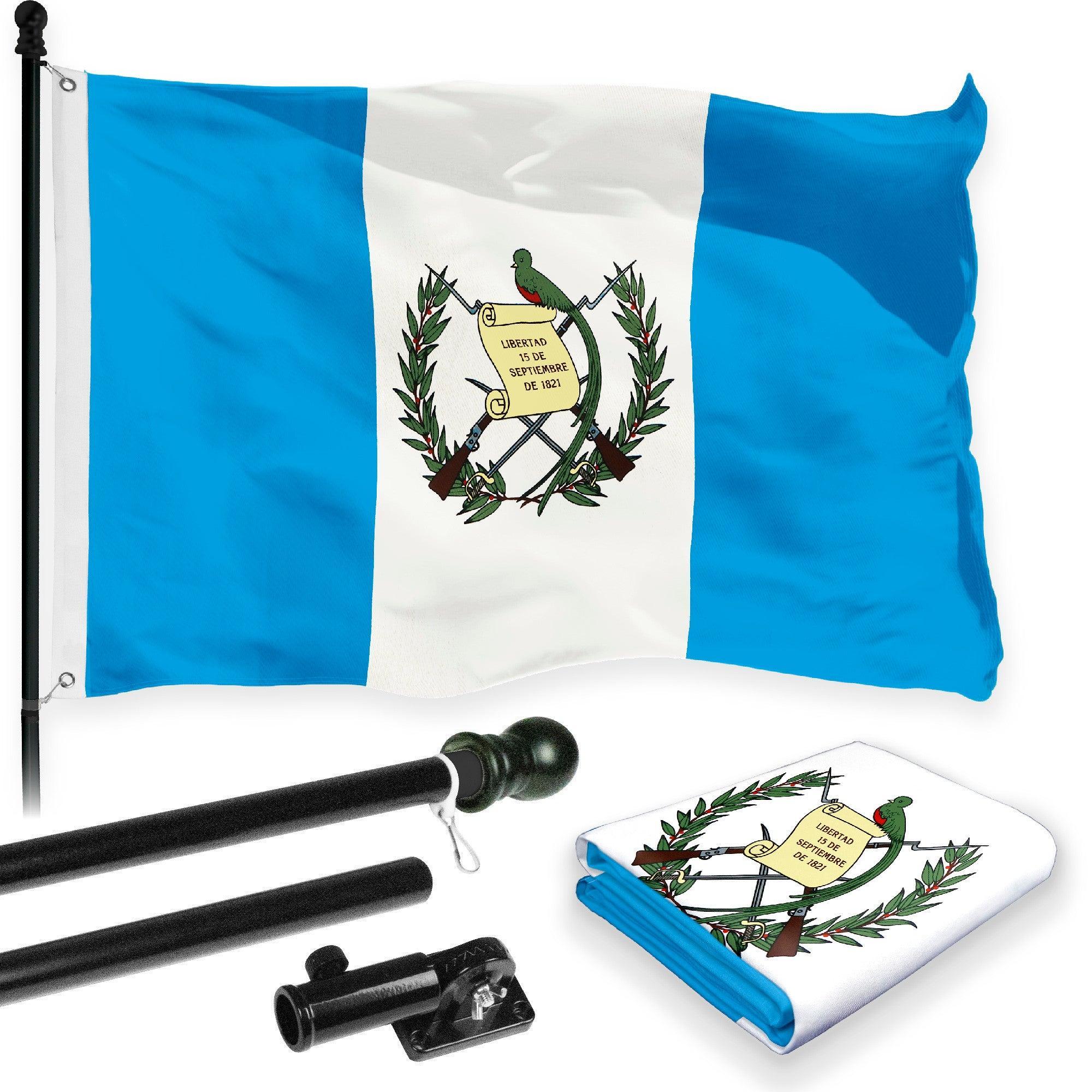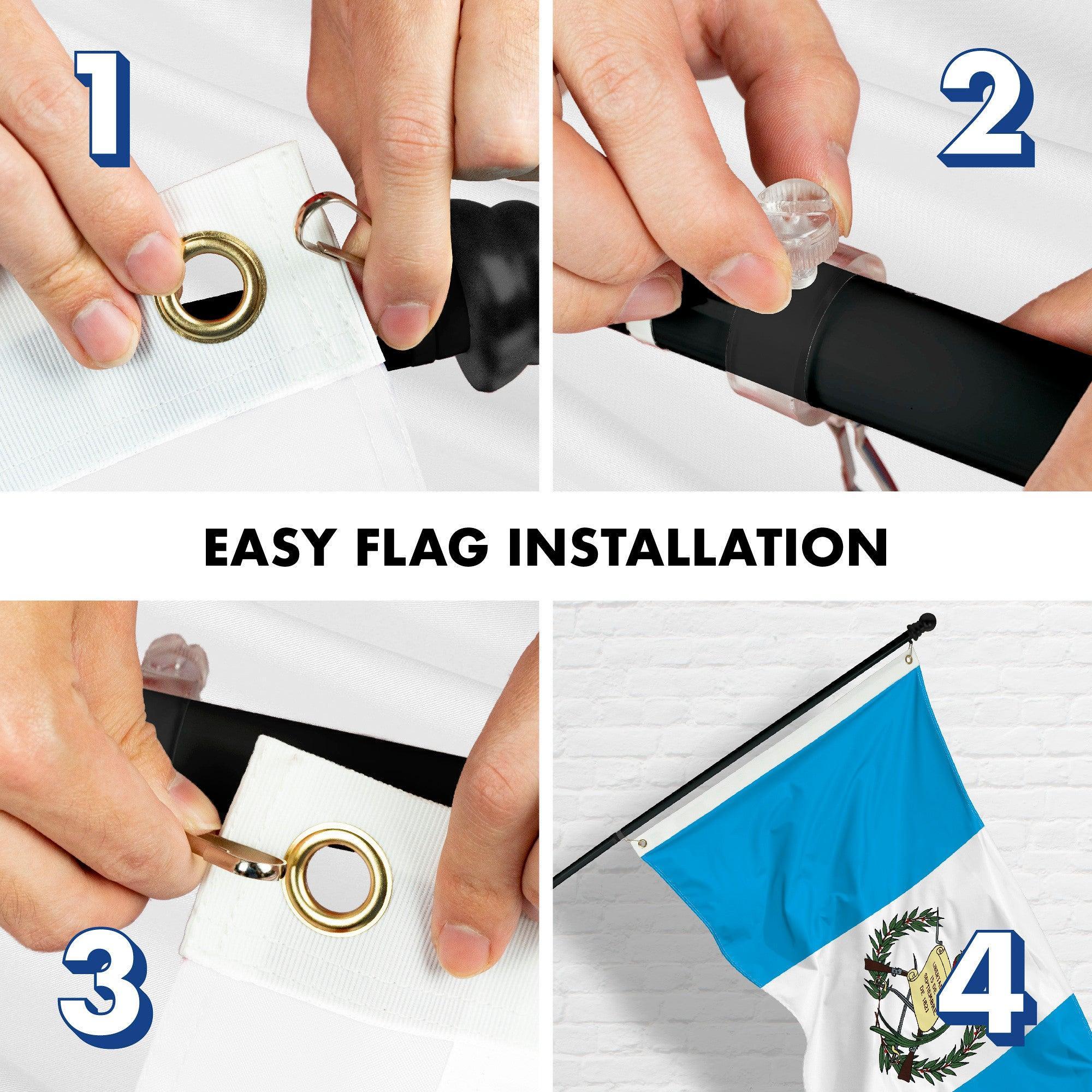 G128 Combo Pack: 6 Feet Tangle Free Spinning Flagpole (Black) Guatemala Guatemalan Flag 3x5 ft Printed 150D Brass Grommets (Flag Included) Aluminum Flag Pole