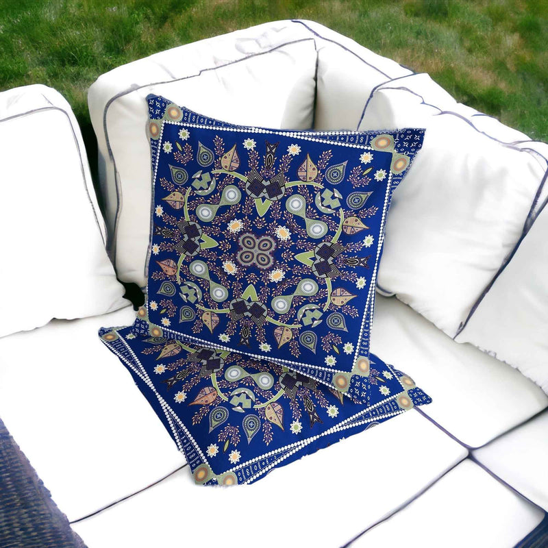 Set of Two 16" X 16" Blue and Green Blown Seam Paisley Indoor Outdoor Throw Pillow