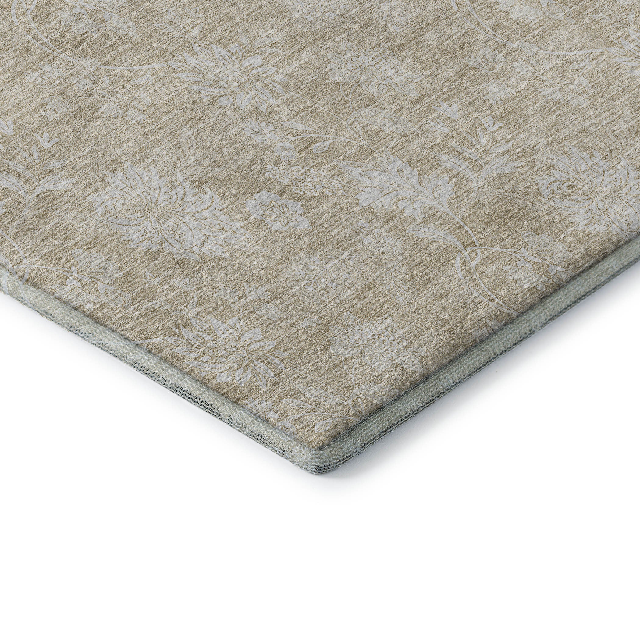 10' X 14' Beige And Ivory Floral Washable Area Rug With UV Protection