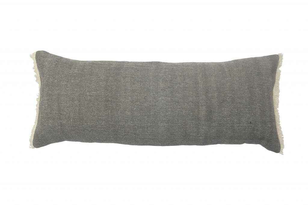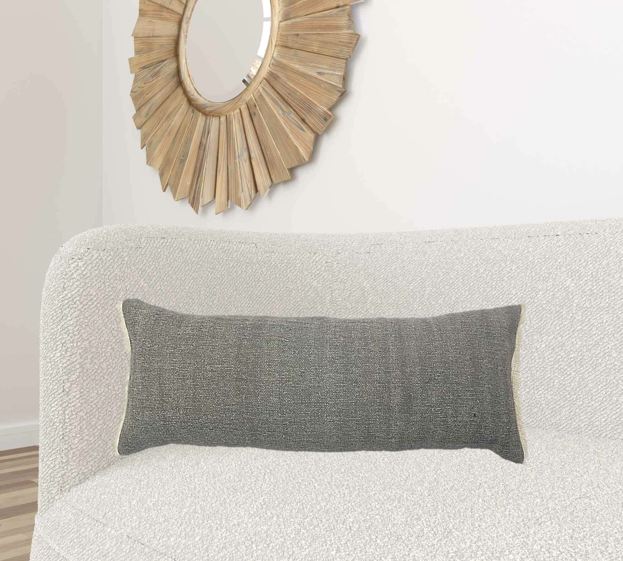 14" X 36" Gray And Off-White 100% Cotton Zippered Pillow