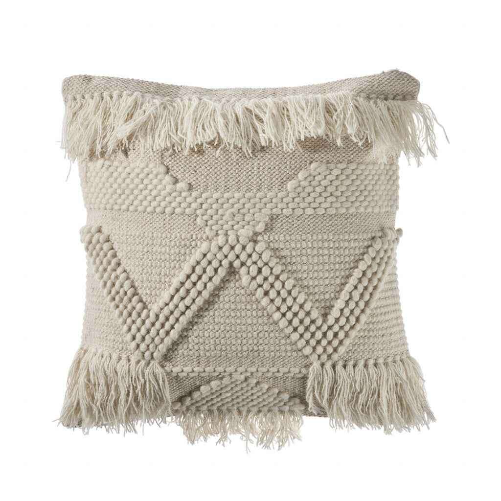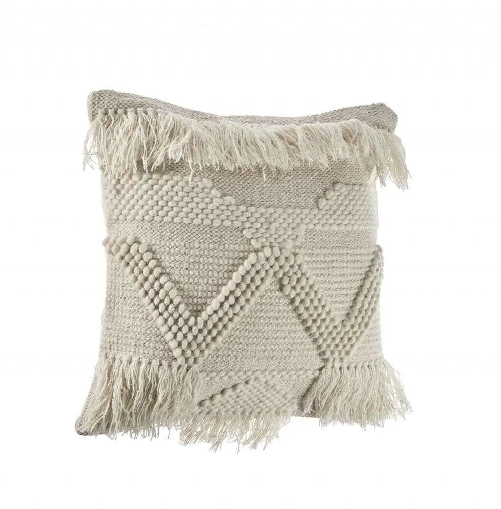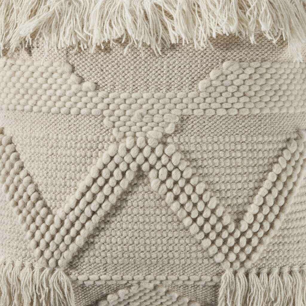 20" X 20" Ivory 100% Cotton Geometric Zippered Pillow