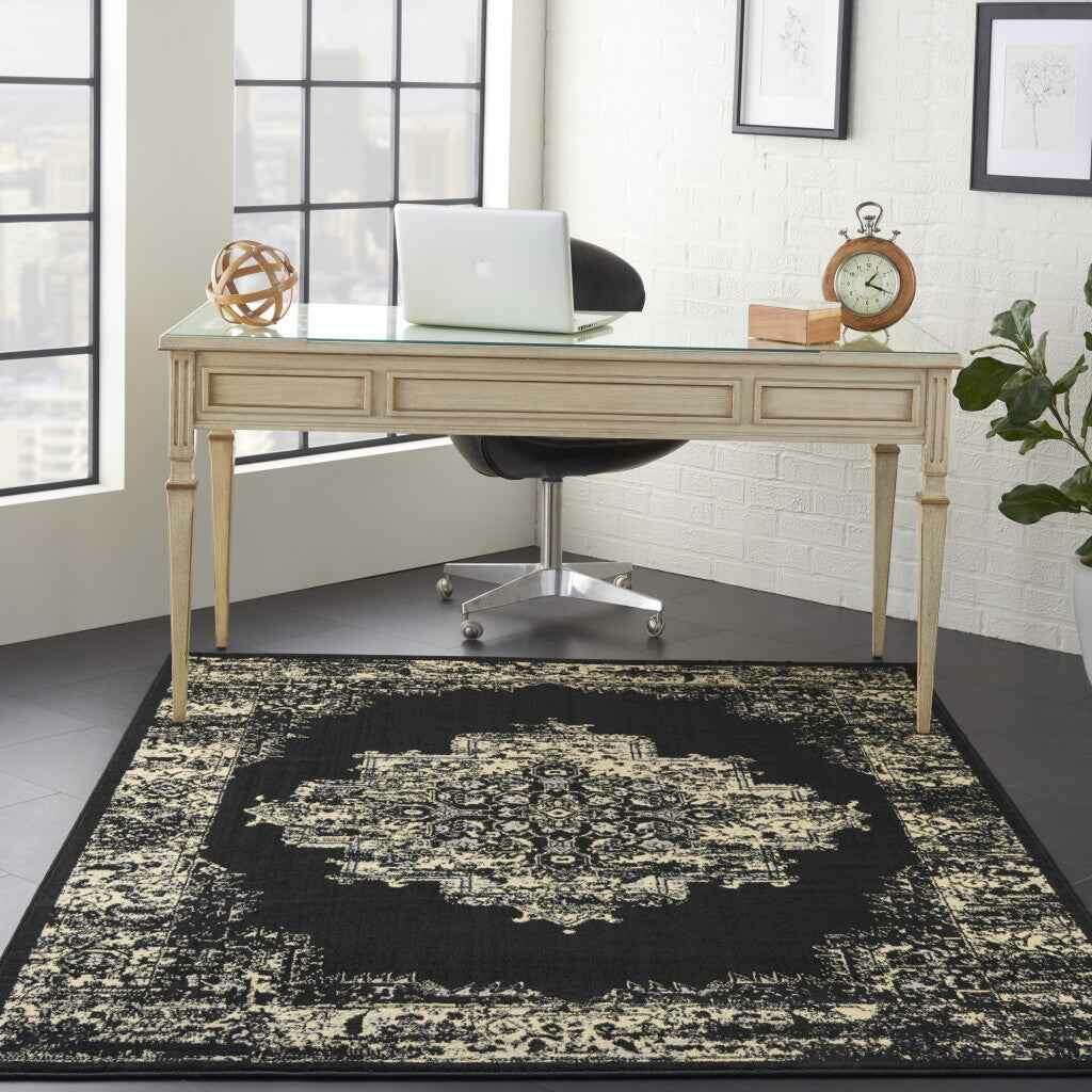 4' X 6' Cream Damask Power Loom Area Rug