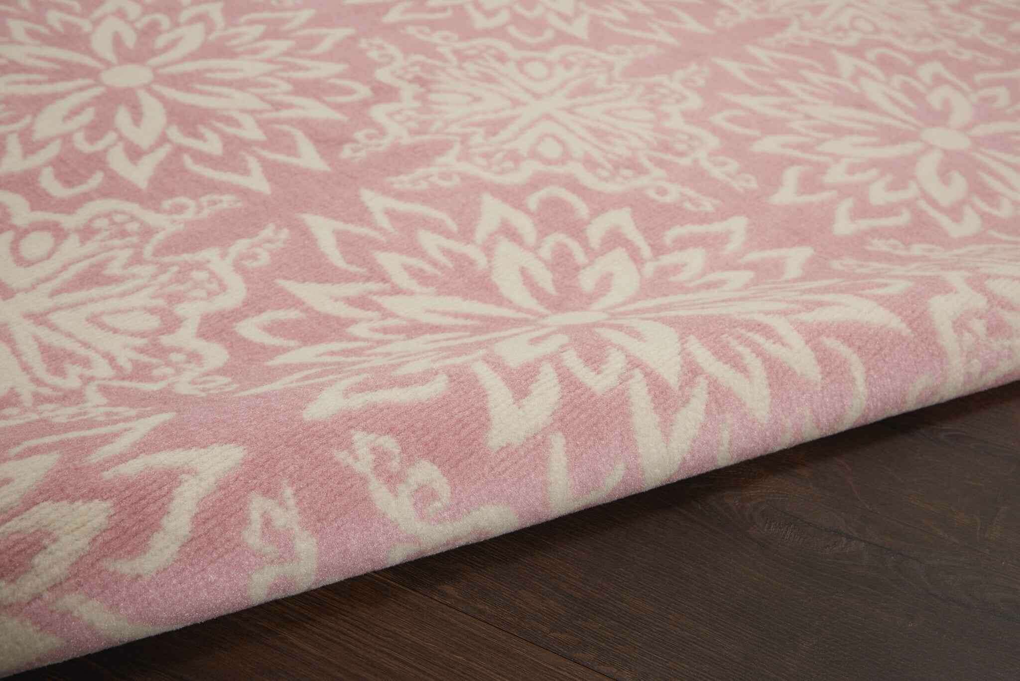 This 5' x 7' pink floral power loom area rug, is a great way to add warmth to a room. This rectangle shaped rug features a floral design in pink to give it visual interest. A classic shape marries with good looking design for your space Made in Turkey, this rug offers high quality combined with good looking designer sensibilities. Area Rugs help to give warmth and sense of home to your space. .50" H x 63" W x 87" D