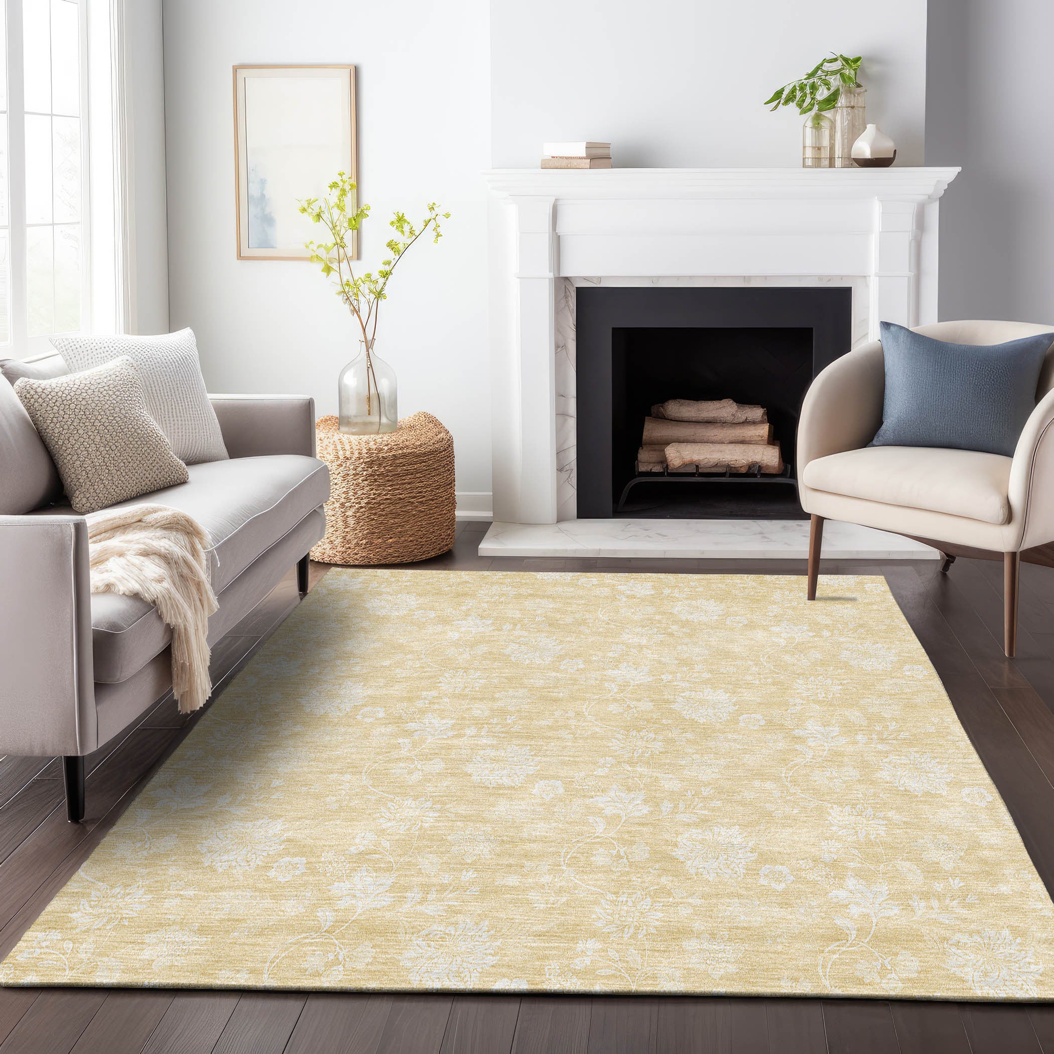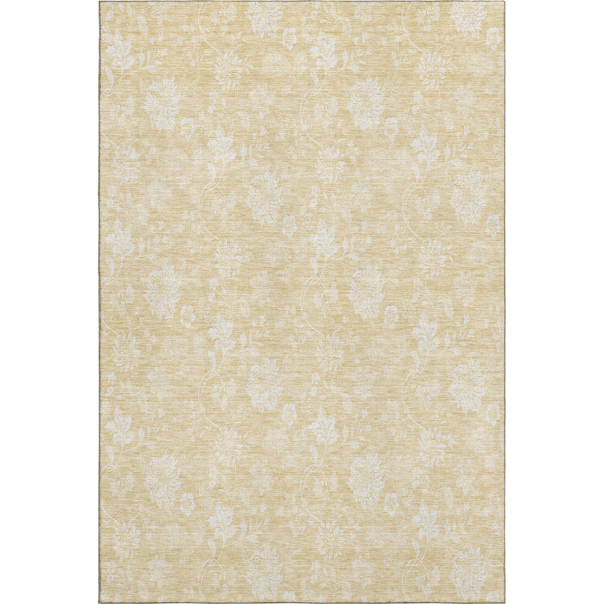 Add some artistry to your room with this 5-foot x 8-foot amber and ivory floral washable area rug with uv protection. Ideal for spaces with kids and pets, this rug is stain resistant to help repel dirt and spilled liquids. Built to last, this rug crafted from polyester fibers is known for its durability and long lasting appeal. Rugs are a great way to showcase your style, hide imperfections, warm your home and reduce noise. This larger sized, transitional styled rug is ready to create a focal point or statement piece in your room. 60.00-inch h x 90.00-inch w x 0.39-inch d.