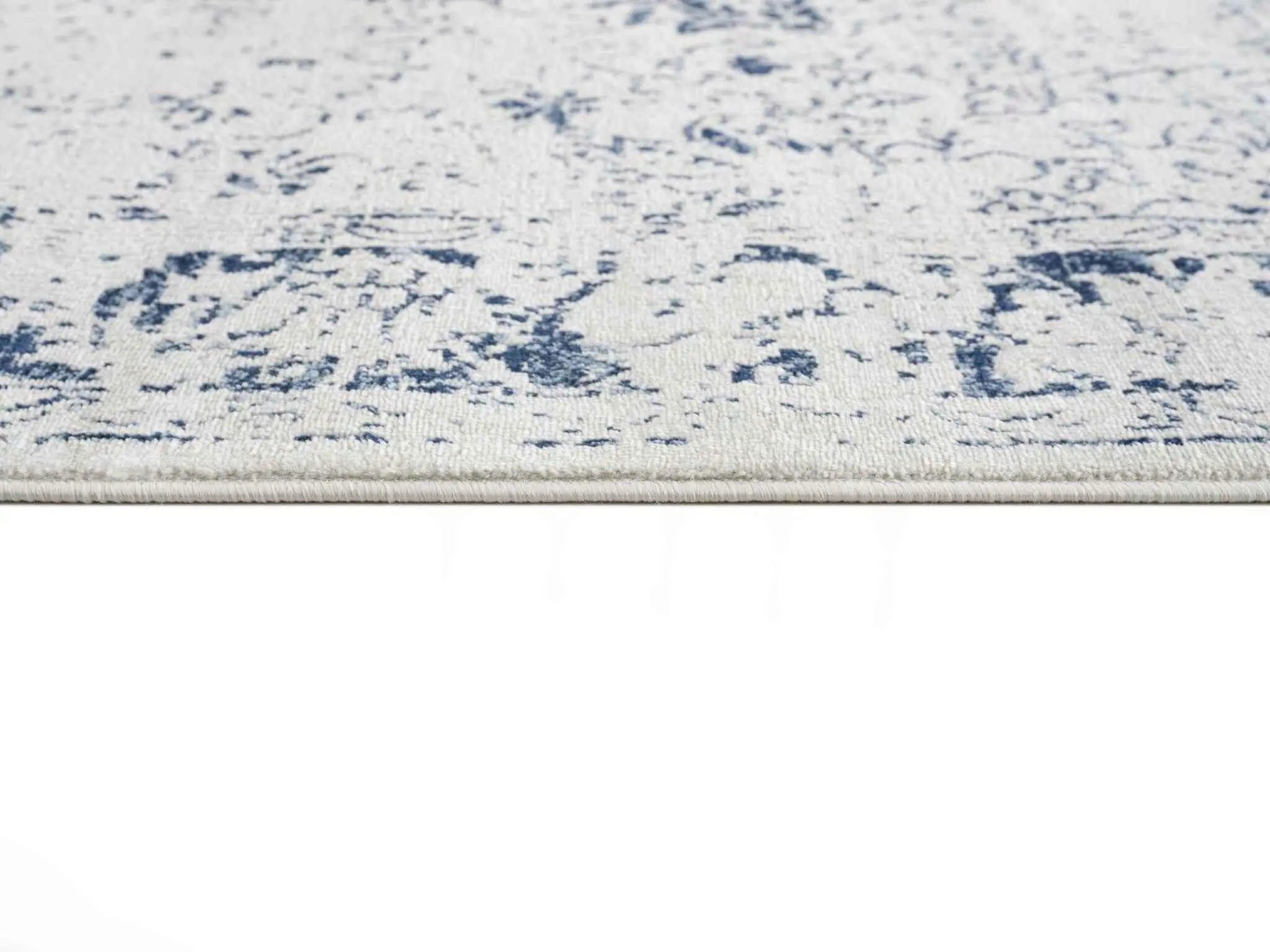 Imperial in vision and vibe, this stunning Navy Blue Distressed Floral Area Rug is made to accentuate an opulent beauty in your retro-modern living space. Showcasing the authentic traditional patterns in navy blue with a distressed effect on the ivory base to create a mesmerizing timeworn impression. Made in Turkey with 100% polypropylene material to stand the test of durability and resist stains in high-traffic indoor areas with children and pets. The high-pile construction provides a soft and luxurious surface texture making it an ideal piece to place on the floors of your bedroom, living space, dining area, or hallway. The ingenious blend of on-trend hues with traditional patterns makes this area rug a timeless decorative accent to match the taste of any interior theme without ever going out of style! 91” x 63” x 0.4”