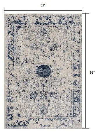 5’ X 8’ Navy Blue Distressed Floral Area Rug