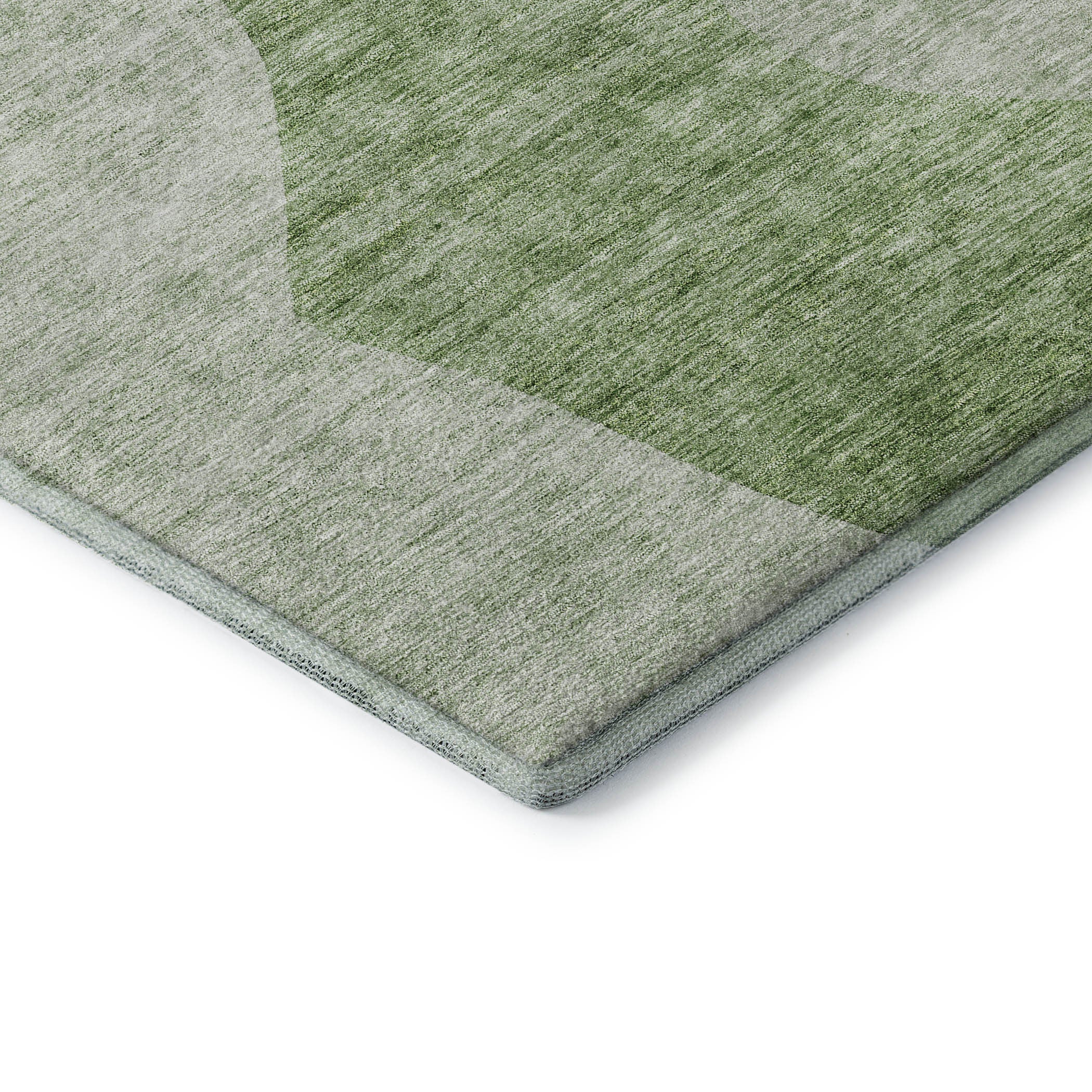 9' X 12' Artichoke Green And Ivory Abstract Washable Area Rug With UV Protection