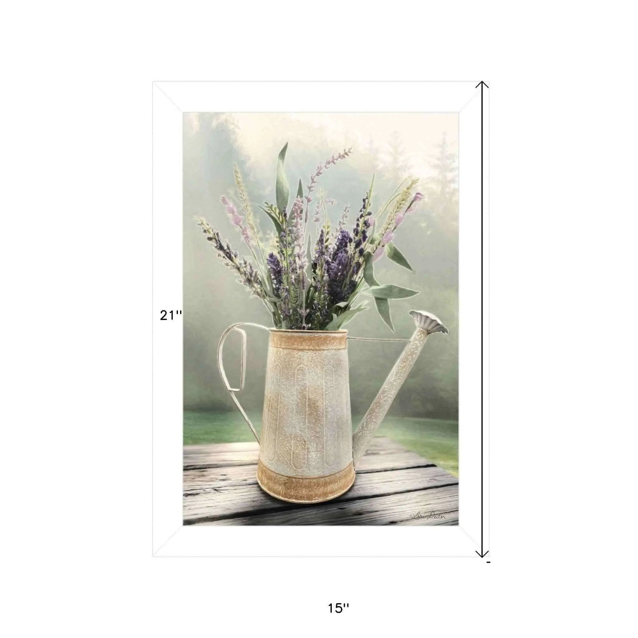 Lavender Watering Can 2 White Framed Print Wall Art