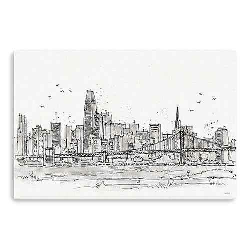 Monochrome City Skyline Sketch Unframed Print Wall Art