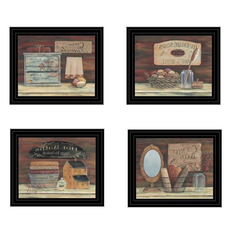 Set Of Four Bathroom Collection 1 Black Framed Print Bathroom Wall Art