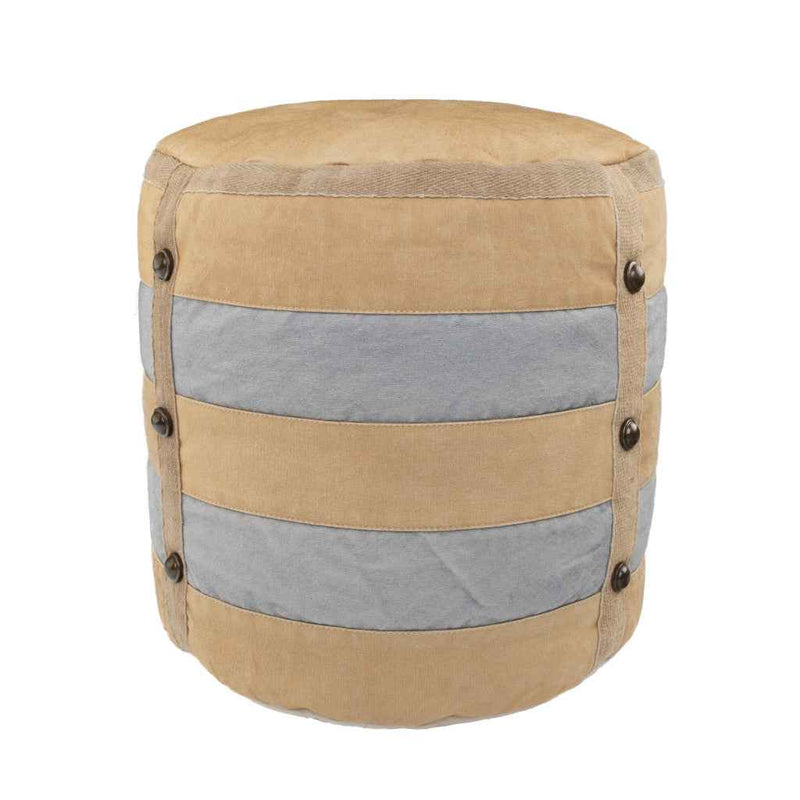 16" Tan Cotton Cylinder Striped Pouf Ottoman