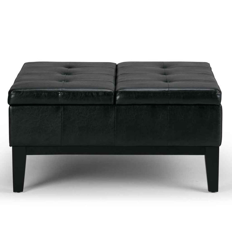 36" Black and Dark Brown Leather Cocktail Ottoman With Storage
