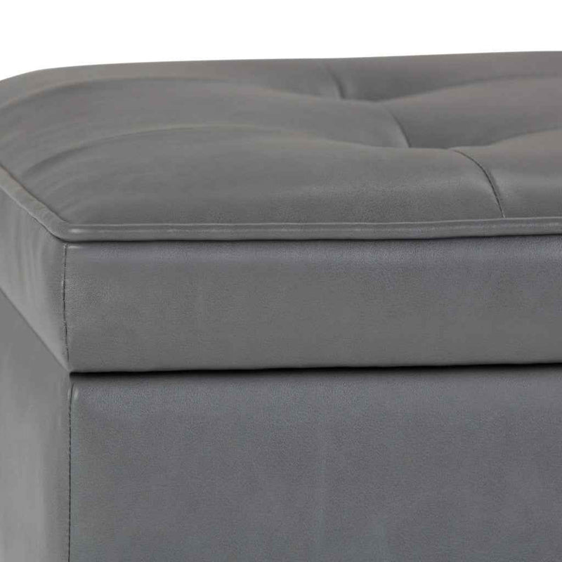 44" Gray and Dark Brown Leather Ottoman With Storage