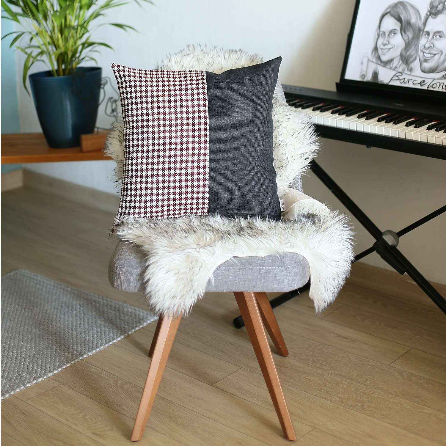 Houndstooth Divided Black Faux Leather Throw Pillow
