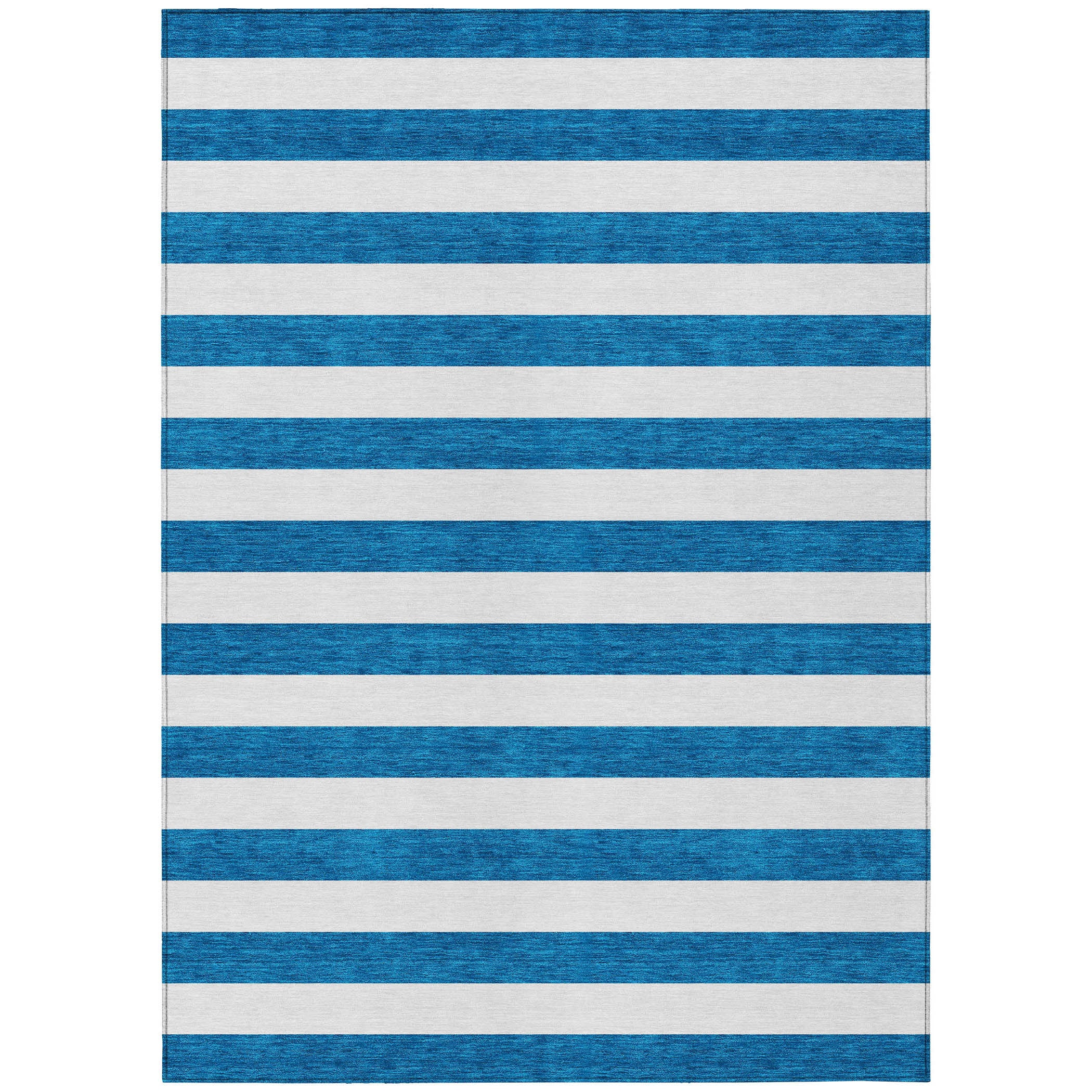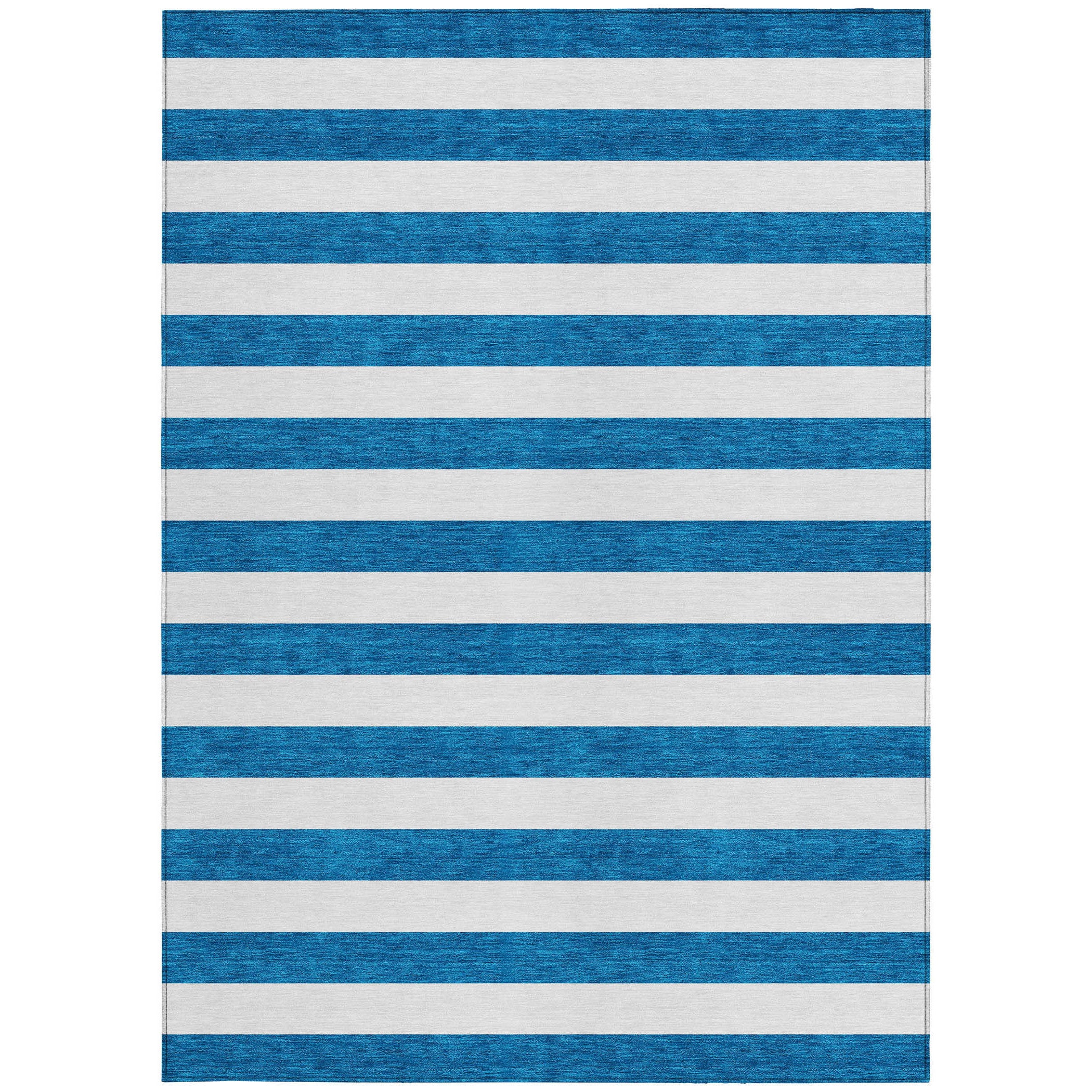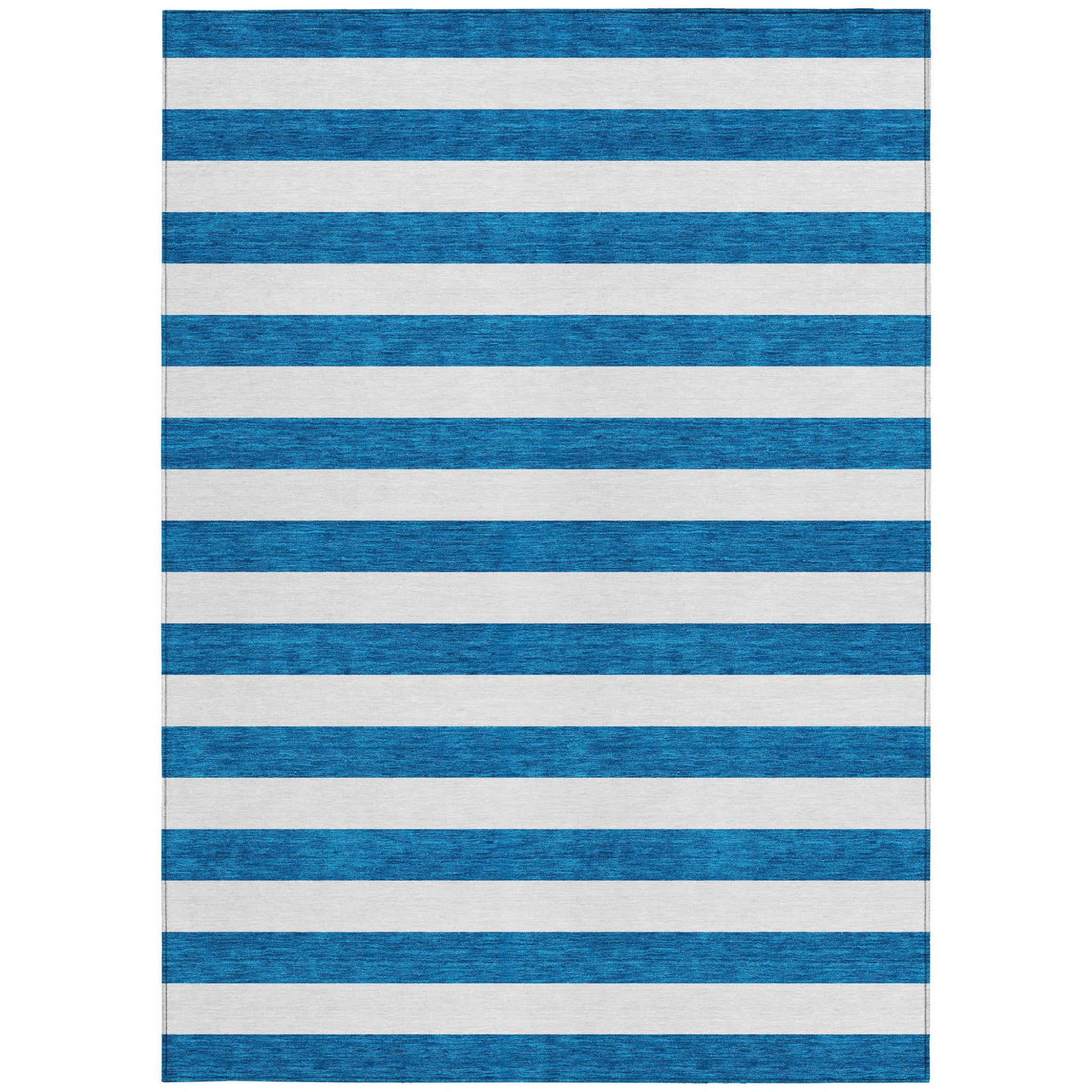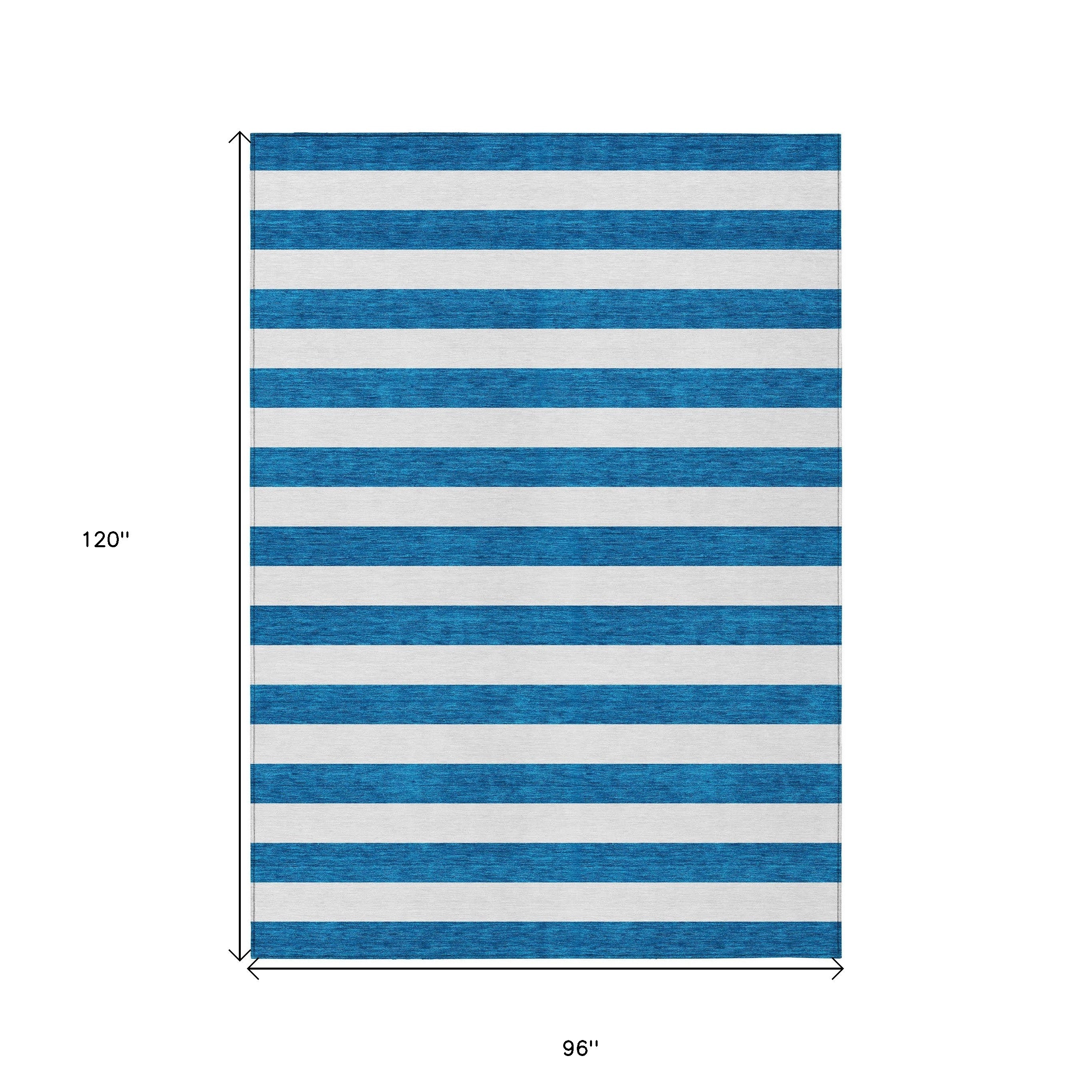 8' X 10' Navy Blue Striped Washable Non Skid Indoor Outdoor Area Rug